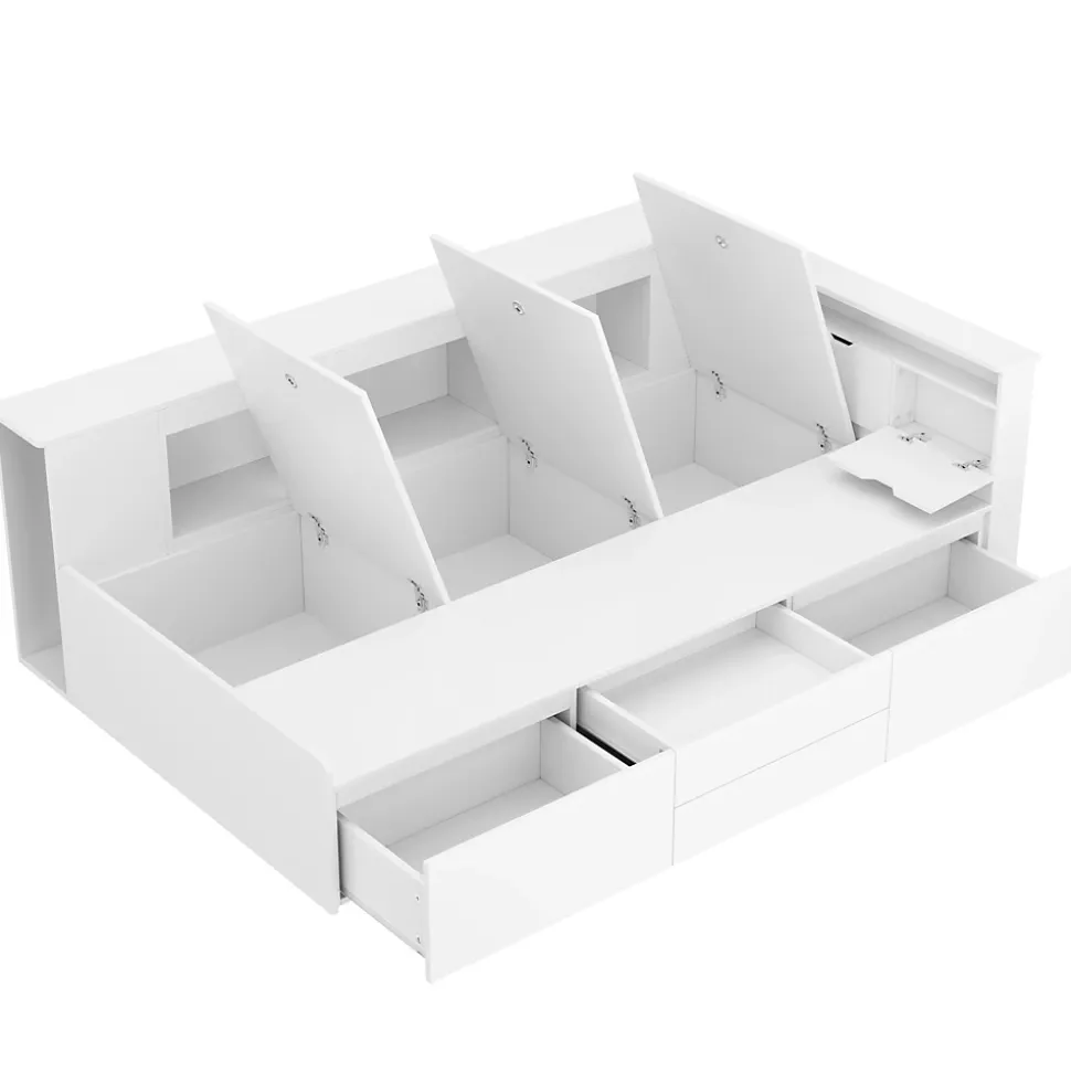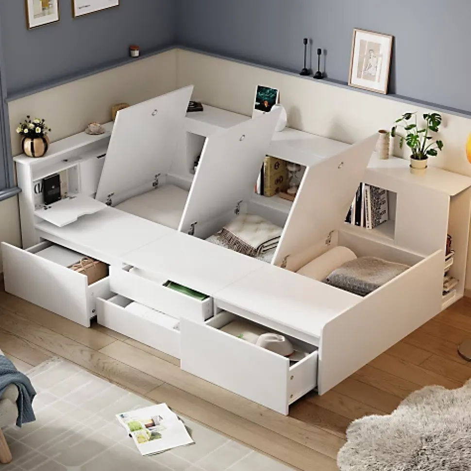 •【Conception simple et élégante】Le design du cadre de lit blanc est simple et élégant, adapté aux chambres d’enfants avec différents styles de mobilier, offrant un aspect frais et lumineux et stimulant l’imagination et la créativité des enfants•【Rangement multifonctionnel】Le lit dispose de 4 tiroirs sur le côté, d’étagères et d’armoires de rangement sur le lit, permettant de ranger livres, jouets et autres objets, rendant la chambre plus ordonnée•【Bois massif de haute qualité】Le cadre de lit est en bois massif, robuste et durable, assurant une longue durée de vie et une bonne capacité de charge, sûr pour la santé de votre enfant•【Facile à installer】Le lit est facile à assembler avec les instructions détaillées fournies, même sans expérience préalable, permettant un montage rapide et sans effort.