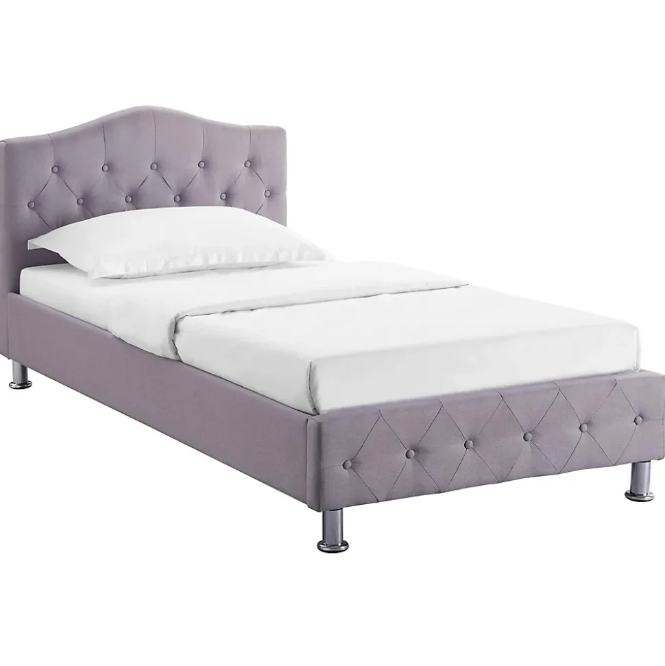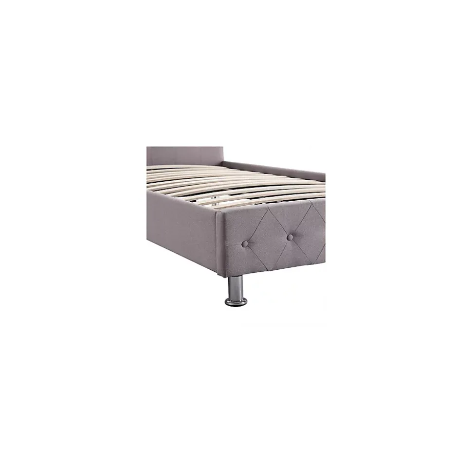 - Lit simple couchage de 90 x 190 cm avec sommier à lattes et revêtement en tissu capitonné de coloris gris