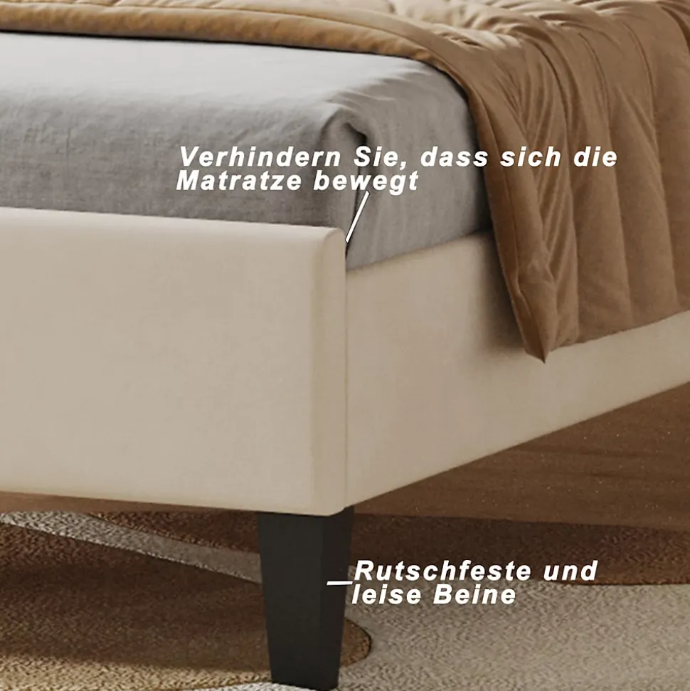 Caractéristiques1. Look chicI moderne : Comprend une tête de lit rembourrée pour donner à la chambre un look moderne et chic. Le rembourrage en mousse épaisse offre un confort supplémentaire.2. Cadre en bois robuste : le cadre de lit est doté d’une structure en bois robuste et d’un système de lattes en bois pour plus de stabilité et de sécurité. Cela contribue à garantir la durabilité et la stabilité à long terme du lit.3. Durabilité et stabilité : le cadre de lit est fabriqué en MDF massif et en panneaux de particules, avec des supports métalliques en forme de croix offrant un support dense et puissant, avec une capacité de charge allant jusqu’à 200 kg. Cela garantit la stabilité et la longue durée de vie du cadre de lit.4. Aucun sommier tapissier requis : la zone du matelas est équipée de 12 panneaux renforcés, qui offrent un bon soutien et répartissent uniformément le poids du corps, offrant aux utilisateurs une bonne expérience de sommeil. La tête de lit a un motif floral et est associée à un dossier confortable en tissu velours pour plus de confort.5. Dimensions applicables : les dimensions hors tout sont de 206 x 100 x 110,5 cm (longueur x largeur x hauteur), adaptées aux dimensions de matelas 90 x 200 cm (matelas non inclus). Le cadre de lit a une capacité de charge de 200 kg.Spécification- Taille du produit : 204 x 100 x 104.5-110.5 cm- Matelas recommandé : 90x200cm- Matériaux : Bois + Velours + Métal- Poids : 22 kg- Capacité de charge maximale : 200 kgRemarques- Ce produit est divisé en 2 colis pour la livraison. Il se peut qu’ils n’arrivent pas en même temps. Merci d’attendre patiemment.- La livraison comprend un cadre de lit et un sommier à lattes. Le matelas n’est pas compris dans la livraison.- Si vous avez des questions pendant l’installation, veuillez nous contacter dès que possible.