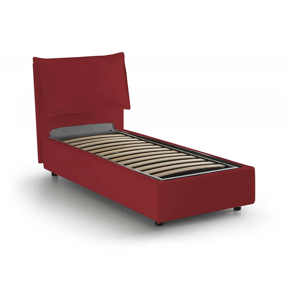 LIT SIMPLE – Lit coffre avec revêtement en tissu, 100% Made in Italy, Ouverture frontale, adapté pour matelas 90×190 cm, Rouge. STRUCTURE – La structure du lit est en fibre de bois surélevée du sol avec des pieds en ABS et est recouverte de tissu polyester doux, déhoussable et lavable en machine à 30° – La tête de lit linéaire assortie en tissu avec coutures apparentes est solide et résistante – Le sommier à lattes en contreplaqué est inclus dans la structure – Mécanisme d’ouverture en fer – L’ajout de la boîte de rangement pratique et peu encombrante permet de transformer le lit en un coffre spacieux pour les draps, les oreillers et les couettes. MADE IN ITALY – L’article est produit en Italie, avec l’utilisation des meilleurs matériaux et la plus haute qualité et attention aux détails – Le soin des processus de production est synonyme de fiabilité, de résistance et de raffinement – Made in Certification Italy est une garantie de pleine conformité avec la réglementation de l’Union européenne. ASSEMBLAGE – Le montage est simple et rapide: grâce aux outils de montage fournis en kit avec le produit et le livret d’instructions vous pourrez assembler votre produit en quelques minutes – Article certifié OekoText. MESURES ET OUVERTURE – Dimensions du lit: Longueur 205 x Largeur 105 x Hauteur 95 cm (hauteur du sommier depuis le sol: 32cm) – Ouverture du conteneur: avant – Profondeur du conteneur: 20 cm environ – Hauteur des pieds: 10 cm environ – Fond de lit en mélamine d’une épaisseur de 1 cm – Convient pour matelas de taille: 90×190 cm – Matelas non inclus