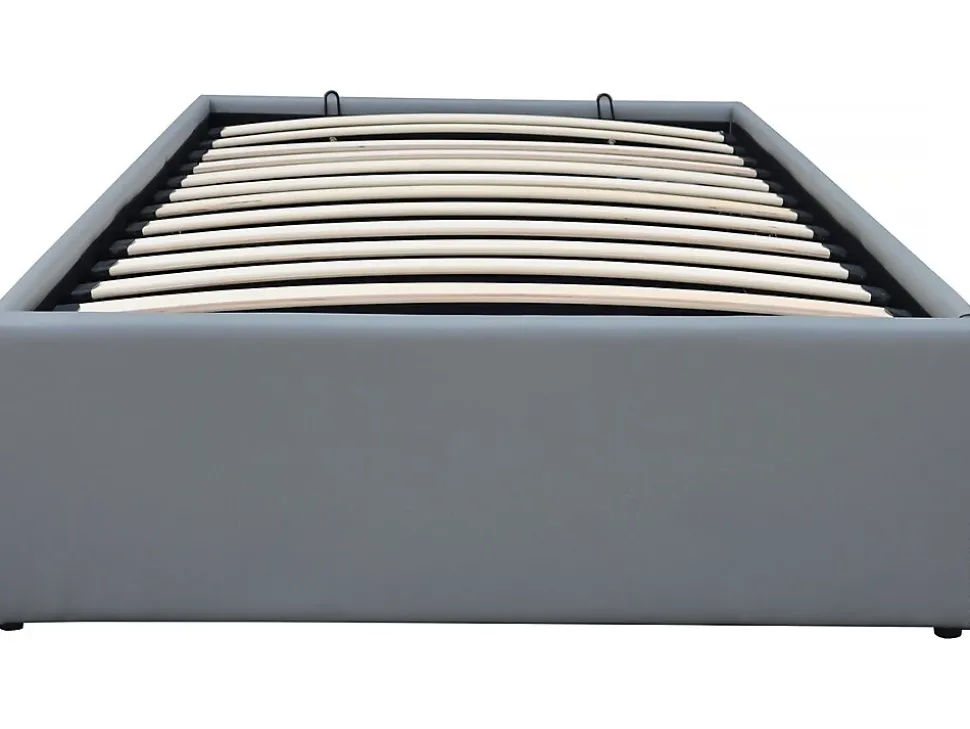 Lit double en PVC avec coffre « Ava » – Gris – 90 x 190 cmDécouvrez notre lit double gris élégant, pratique et polyvalent, conçu pour rehausser le confort et l’organisation de votre espace de sommeil.Le lit est équipé d’un solide sommier à lattes, spécialement conçu pour offrir un soutien adéquat à votre matelas, vous garantissant ainsi des nuits de sommeil confortables et paisibles. Vous vous réveillerez reposé et revigoré, prêt à affronter une nouvelle journée.L’un des atouts majeurs de ce lit double est son coffre de rangement généreux situé sous le matelas. Ce compartiment secret vous permet de maximiser l’utilisation de l’espace dans votre chambre à coucher.Le coffre s’ouvre et se ferme facilement grâce à un système pratique, donnant un accès rapide à vos affaires tout en maintenant votre chambre bien organisée. Lit simple en PVC avec coffre « Ava » – Sommier – Coffre de rangement – 90 x 190 cm Gris .Descriptif: Lit simple en PVC avec coffre Ava – Sommier – Coffre de rangement – 90 x 190 cm GrisMatière(Filtre): Simili cuirMatières: Simili cuirStructure: boisCouleurs: Griscouleur (filtre): Gris.Dimensions: 203 x 97 x 31 cmLongueur: 203 cmLargeur: 97 cmhauteur: 31.3 cmDimensions du couchage: 90×190 cmDimensions (Filtre): 90 x 190 cmSommier: inclusDimensions des lattes: 88.5 x 5.2 x 0.9 cmLattes: 12Tête de lit: 97 x 30 x 55 cmCoffres: InclusDimensions utiles des coffres: 90 x 190 x 26 cmpieds: 0.3 x 1.3 cmPoids: 35 KgConseils d’entretiens: Nettoyez le lit en PVC régulièrement à l’aide d’un chiffon doux ou d’une éponge imbibée d’eau savonneuse. Évitez d’utiliser des produits chimiques agressifs qui pourraient endommager le matériau.Colisage: 2 colis : – 1,07 x 0,345 x 0,175 m, 11 kg – 2,05 x 0,33 x 0,125 m, 24 kg