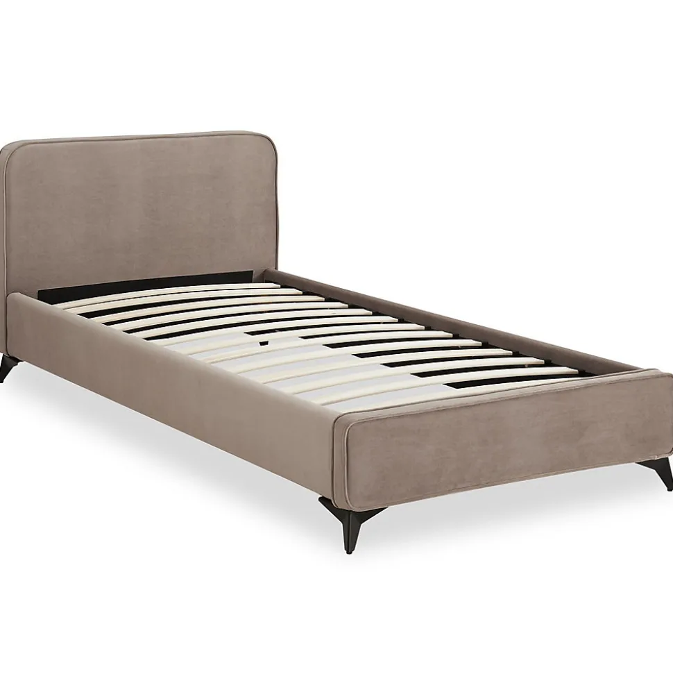 Lit simple Ravello Ce lit une place au design épuré est parfait pour aménager une chambre moderne. Avec son cadre en bois et métal robuste, il est revêtu d’un tissu doux et résistant. La taille de couchage 90×190 cm en fait un choix idéal pour une personne. Son sommier à lattes est inclus, assurant un soutien optimal pour un sommeil réparateur. Parfait pour les chambres d’enfants, d’adolescents ou d’amis. Description des matériaux : – Le cadre du lit est recouvert d’un revêtement en tissu, coloris grège. – Le cadre est en bois et en métal. – Les pieds sont en métal. Caractéristiques du produit : – Taille de couchage : 90 x 190 – Hauteur des pieds : 10,5 cm – Hauteur côté du lit : 20,5 cm – Profondeur de pose du sommier : 3,5 cm – Sommier à lattes inclus Livraison et montage : – Contenu de la livraison : lit et sommier – Article livré en pièces détachées – Assemblage facile grâce à la notice – Livraison par transporteur – Article livré sans décoration – Photo non contractuelle Résumé: – Hauteur cadre de lit: 21 cm – Hauteur pan de lit: 23 cm – Hauteur pied de lit: 23 cm – Hauteur tête de lit: 80 cm – Profondeur d’insertion: 5 cm – Convient uniquement avec: Sommier fagot à lattes – Description du matériel: 100% Polyester – Extras: Avec sommier à lattes – Dimensions monté: 80 x 102 x 204 cm (H x L x L) – Couchage: 90 x 190 cm – Couleur: Gris foncé – Matériel: Métal, Tissu de recouvrement, Bois