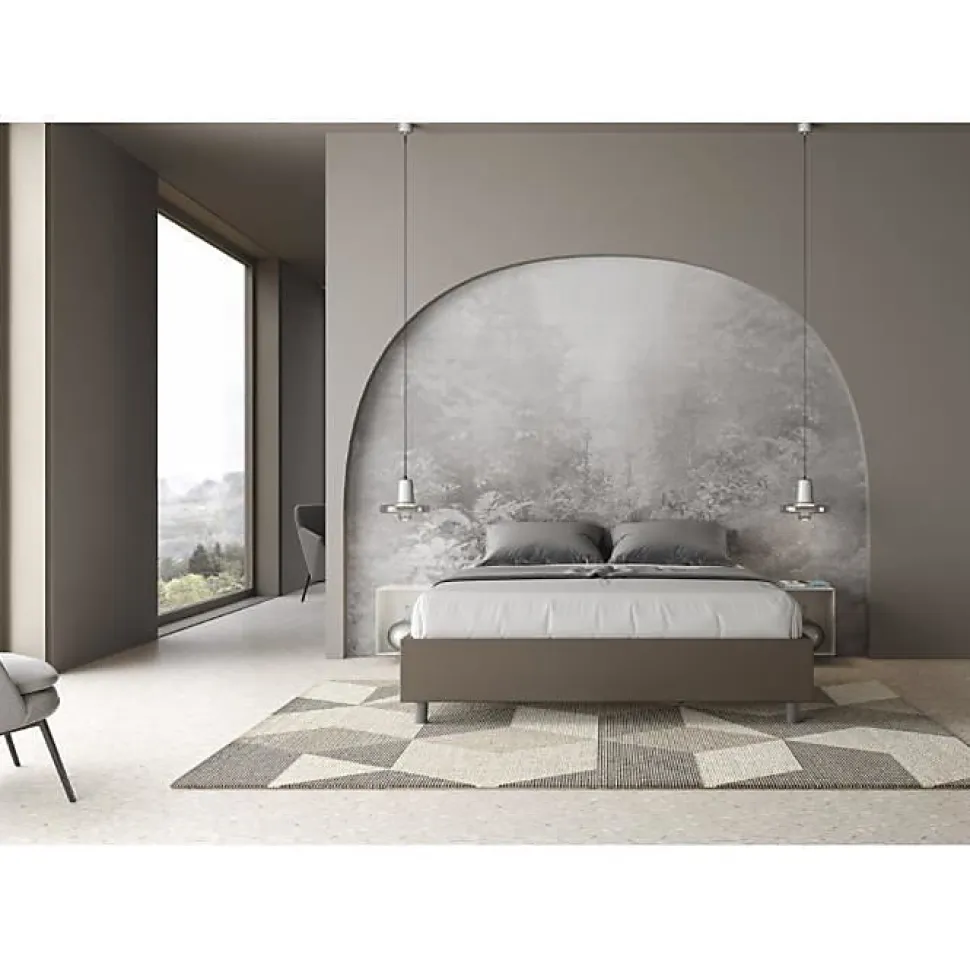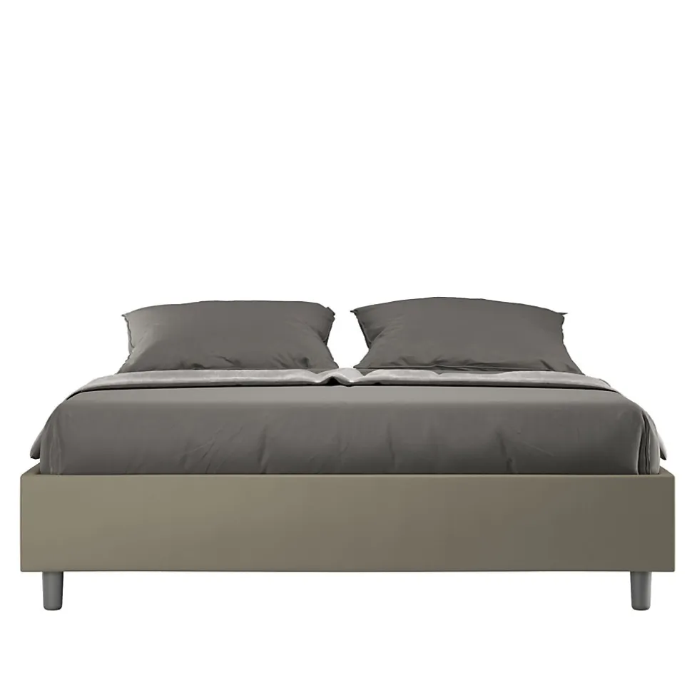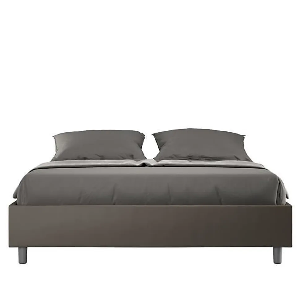 Lit double Azelia 160×190 sommier avec lit rembourré, revêtement en simili cuir, particulièrement polyvalent et facilement combinable avec n’importe quel style d’ameublement.Le lit double sommier Azelia 160×190 se caractérise par un style simple et linéaire accentué par l’absence de tête de lit.La présence du matériau en simili cuir, en plus de donner à la pièce une atmosphère accueillante et invitante, offre la commodité d’un nettoyage rapide et facile, grâce à l’utilisation d’un simple chiffon en microfibre.Lit fourni sans sommier, prévu pour sommier 160×190 h.4 cm et matelas 160×190 cm – Matelas non inclusCouvre-lit non amovible.Produit ItyhomeFabriqué en ItalieDimensions lit : L.172 P.202 H.39 cmHauteur des pieds : 12 cmHauteur du lit : 27 cmHauteur du lit depuis le sol : 39 cm