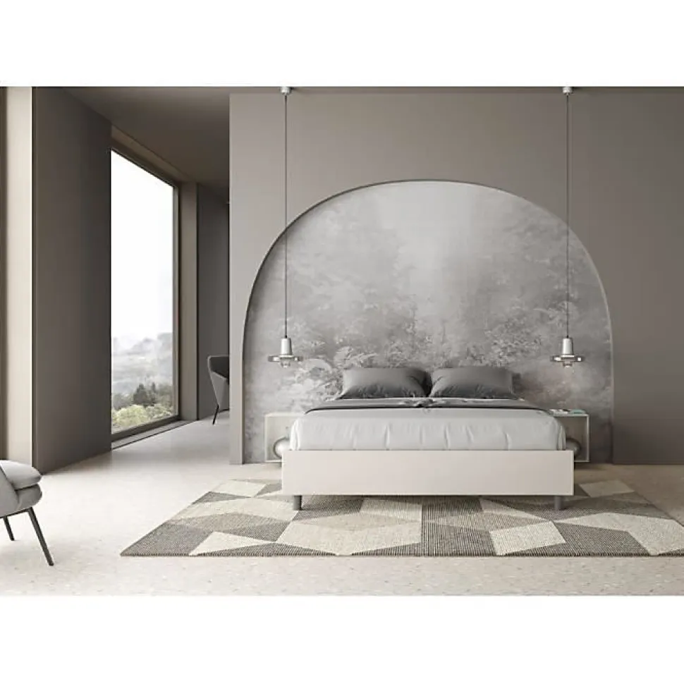 Lit double Azelia 160×200 sommier avec lit rembourré, revêtement en simili cuir, particulièrement polyvalent et facilement combinable avec n’importe quel style d’ameublement.Le lit double sommier Azelia 160×200 se caractérise par un style simple et linéaire accentué par l’absence de tête de lit.La présence du matériau en simili cuir, en plus de donner à la pièce une atmosphère accueillante et invitante, offre la commodité d’un nettoyage rapide et facile, grâce à l’utilisation d’un simple chiffon en microfibre.Lit fourni sans sommier, prévu pour sommier 160×200 h.4 cm et matelas 160×200 cm – Matelas non inclusCouvre-lit non amovible.Produit ItyhomeFabriqué en ItalieDimensions lit : L.172 P.212 H.39 cmHauteur des pieds : 12 cmHauteur du lit : 27 cmHauteur du lit depuis le sol : 39 cm