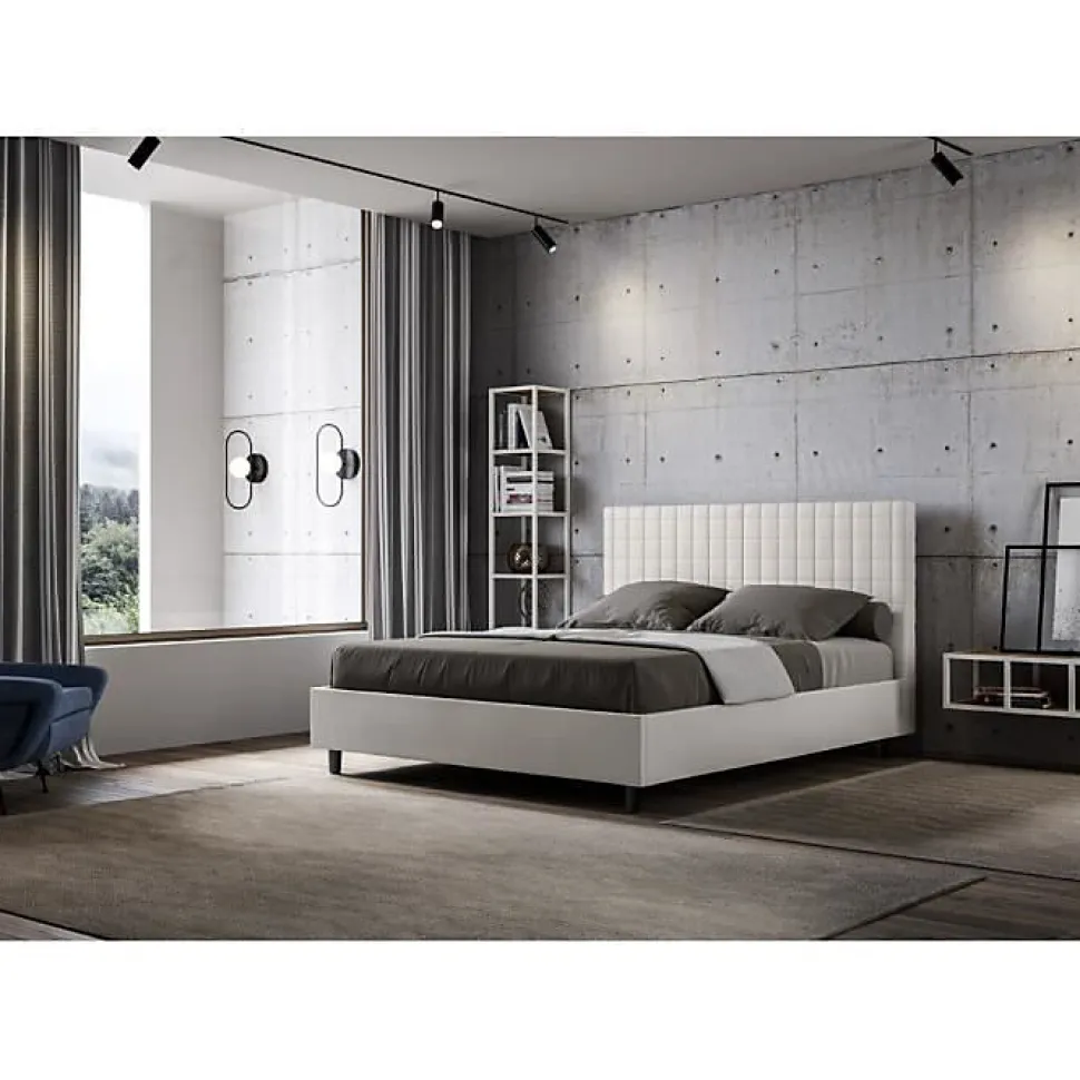 Lit double Sunny 160×200 avec tête de lit et lit rembourrés, revêtement en simili cuir, particulièrement polyvalent et facilement combinable avec n’importe quel style d’ameublement.Le lit double Sunny 160×200 se caractérise par un style moderne et élégant, mis en valeur par la tête de lit matelassée recouverte de simili cuir.La présence du matériau en simili cuir, en plus de donner à la pièce une atmosphère accueillante et invitante, offre la commodité d’un nettoyage rapide et facile, grâce à l’utilisation d’un simple chiffon en microfibre.Lit fourni avec sommier à lattes, prévu pour un matelas 160×200 cm – Matelas non inclusCouvre-lit non amovible.Produit ItyhomeFabriqué en ItalieDimensions lit : L.175 P.220 H.122 cmHauteur des pieds : 12 cmHauteur du lit : 27 cmHauteur du filet depuis le sol : 39 cm