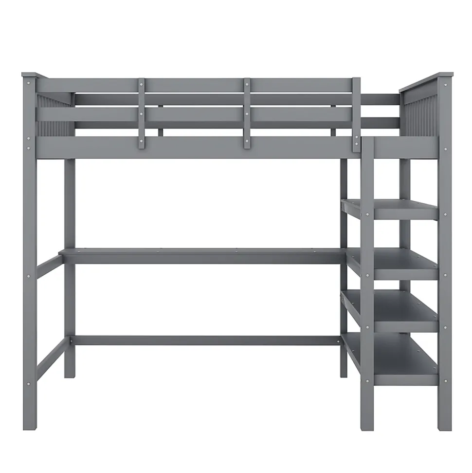 Design & styleCe lit superposé présente un dessin sobre et contemporain en finition grise, pensé pour s’harmoniser avec différents styles de décoration. La grande dimension de couchage 140×200 cm offre un vrai confort pour un usage quotidien tout en optimisant l’espace au sol.Fonctionnalités & rangement Bureau intégré sous le couchage pour créer une zone de travail ou d’étude fonctionnelle. Étagères pratiques qui servent aussi d’accès au lit, offrant du rangement et une circulation sécurisée. Espace libre à côté du bureau permettant l’ajout d’un petit canapé ou d’une armoire selon les besoins de la chambre.Matériaux & entretienStructure en pin massif associée à des panneaux MDF pour garantir robustesse et durabilité tout en limitant la déformation. Surfaces faciles à nettoyer : un chiffon doux et un nettoyant non abrasif suffisent pour l’entretien courant.Sécurité & usageConçu pour un usage familial, ce lit respecte les normes de sécurité en vigueur et comporte des barrières latérales stables autour du couchage supérieur. Charge maximale recommandée : environ 200 kg. Convient aux enfants à partir de 6 ans selon la norme EN747.Installation & livraisonProduit livré en 3 colis depuis l’entrepôt ; les colis peuvent arriver à des dates différentes, veuillez prévoir un peu de patience. Montage requis, deux personnes conseillées ; notice incluse. Vérifier les éléments à la réception et suivre les recommandations d’installation pour un usage sécurisé.