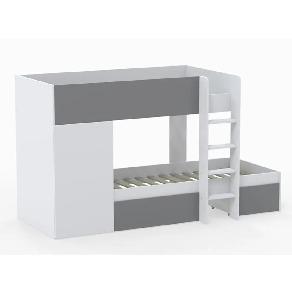 Ce lit superposé est non seulement recherché, mais également apprécié pour son efficacité dans l’optimisation de l’espace. Il est comme la solution idéale pour partager une chambre à coucher tout en maximisant l’espace disponible.Pratique, chacun des lits possèdent des tiroirs de rangement et 1 armoire intégrée avec 1 penderie et 3 tablettes.Matériel:- Structure en panneau de particules.- Echelle non réversible- 2 sommiers à 14 lattes en épicéa- 2 tiroirs de rangement et armoire intégrée avec 1 penderie et 3 tablettes.Dimensions:Zone de couchage 90x190cmLongueur:252cmLargeur : 111 cm Hauteur : 146cmPetit(s) tiroirs : 56 x 29 x 49 cm – Intérieur 52 x 18 x 46 cmGrand(s) tiroirs : 94 x 29 x 49 cm – Intérieur 90 x 18 x 46 cmPrécautions à prendre:* Age minimum d’utilisation : 6 ans* Charge maximale d’utilisation:80 kg* Hauteur maximale de matelas conseillée : 14 cmATTENTION le matelas et la décoration ne sont pas comprise dans la livraison*Les couleurs réelles peuvent différer de ceux indiqué dans l’image en raison de la nature des paramètres de couleur de photographier et de moniteur.Support client et SAV en Français – Pas de livraison dans le DOM TOM et la Corse.**Attention la livraison est prévue au pied de l’immeuble ou de la maison et non à domicile.