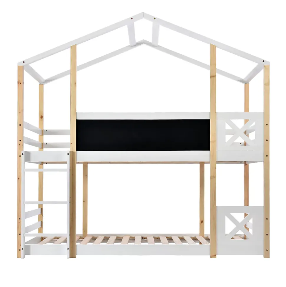 - 【Design en forme de maison dans l’arbre】 Ce lit superposé avec toit en forme de maison offre un espace plus vaste pour que vos enfants jouent ou étudient. La grande planche de 110*27 cm à l’avant permet à vos enfants de laisser libre cours à leur créativité et de personnaliser leur espace.