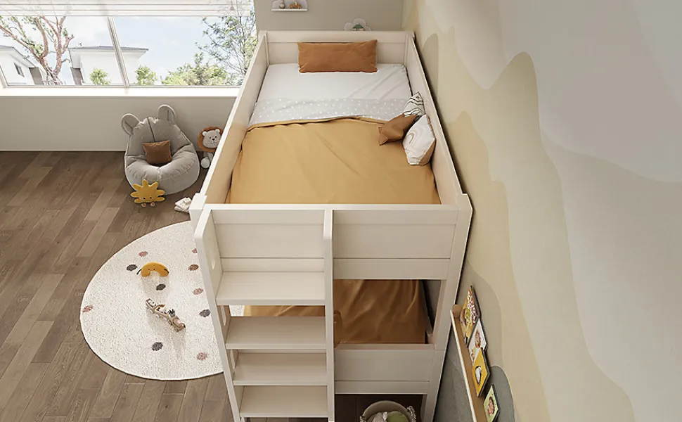 Design & styleCe lit superposé présente une silhouette « luge » peinte en blanc, apportant une atmosphère campagne et chaleureuse à la chambre d’un enfant ou d’un adolescent. Les lignes douces et la combinaison bois/métal offrent un rendu sobre et contemporain.Fonctionnalités & modularité Deux couchages 90×200 cm, idéaux pour frères et sœurs ou partage parent-enfant. Échelle modulable, à monter au pied ou à la tête selon l’agencement de la chambre. Possibilité de séparer le superposé en deux lits simples pour s’adapter à l’évolution des besoins.Matériaux & sécuritéStructure en bois massif et panneaux MDF avec éléments métalliques pour une stabilité renforcée. Conçu pour un usage quotidien, charge recommandée 150 kg par couchage. Conforme à la norme européenne EN 747-1:2024 pour la sécurité et la durabilité.Dimensions & compatibilitéDimensions totales 214 x 95 x 150 cm (LxPxH). Convient pour matelas 90×200 cm (épaisseur recommandée 10 cm, max 12 cm). Largeur d’entrée 36 cm, recommandé pour enfants à partir de 6 ans.Installation & livraisonMontage requis, deux personnes conseillées. Produit livré en 2 colis avec pièces numérotées et notice de montage. Poids brut 58 kg, poids net 53,4 kg. Matelas non inclus. Entretien simple : essuyer avec un chiffon doux pour préserver les finitions.