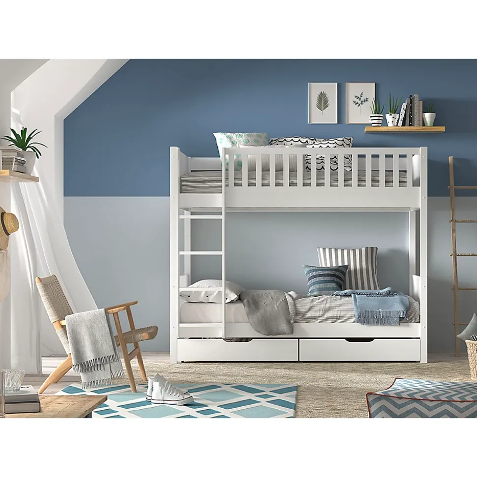 Lit superposé 90×200 2 tiroirs inclus Vipack Scott Blanc