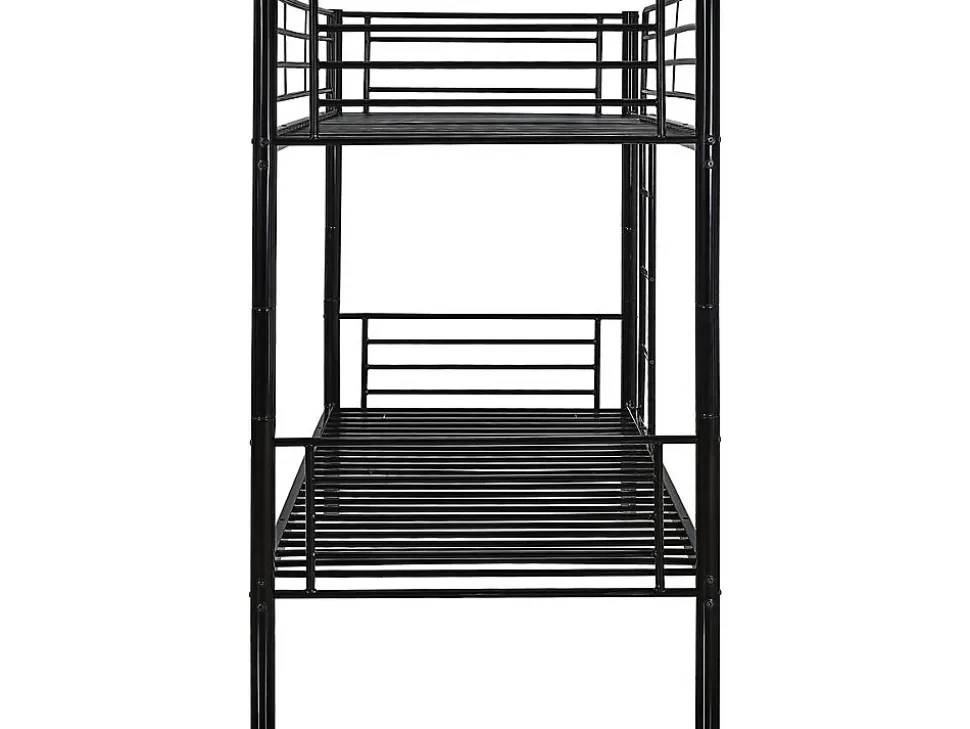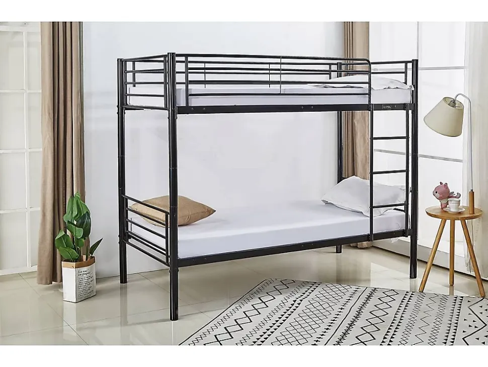 Le lit superposé Adam – 2×1 place – est entièrement conçu en métal afin de vous proposer un produit de plus en plus tendance. De plus, une telle structure confère solidité, robustesse, fiabilité… ce que vous apprécierez assurément ! Dès lors, il devient idéal voire indispensable à toute chambre, offrant 2 espaces de couchage ainsi que la possibilité d’optimiser réellement l’espace occupé dans la pièce. Ainsi, il se pose comme un lit recherché et apprécié, notamment pour partager une chambre à coucher entre plusieurs personnes tout en souhaitant économiser de l’espace. Lit superposé « Adam » en acier – 2 x 1 place – Noir – Dimensions : 200 x 97,5 x 165 cm – Echelle fournie .Matières: acierDescriptif: Barrière de sécurité pour le lit du haut Taille recommandée de matelas : 90 x 190 cmFinition: noir brillantcouleur (filtre): Noirpieds: AcierDimensions du couchage: 90×190 cmMatière(Filtre): MetalTiroirs: En optionTiroir sous lit: En optionCouleurs: noirLattes: 48 Lattes en métal inclues – Distance entre chaque latte : 7 cmÉchelles: Échelle en métal 3 marches incluesDimensions: 200 x 97 x 165 cmLongueur: 200 cmLargeur: 97,5 cmHauteur de couchage: 37 cmHauteur de couchage: 126,5 cmBarrière de sécurité côté échelle: InclusBarrière de sécurité côté mur: InclusDimension entre les deux lit: 89,5 cmPoids: Maximum supporté : 80 kg (lit du haut) – 150 kg (lit du bas)Distance entre chaque marche: 19/23/23/19 cmDimensions tube: 16 mmColisage: 1 colis : – 1,96 x 0,44 x 0,154 m, 39,95 kg