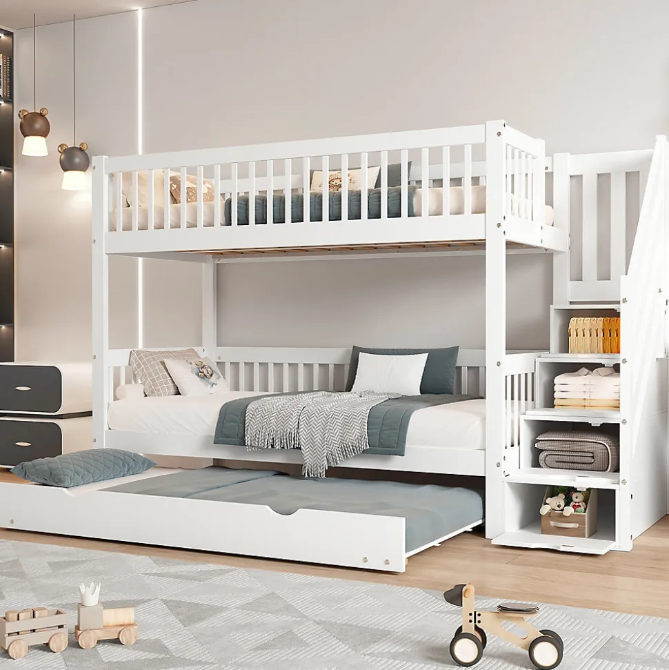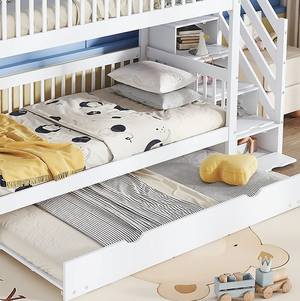 Ce lit superposé avec lit roulant offre une solution flexible et pratique pour les chambres d’enfants. Il comprend un lit supplémentaire de taille 90×190 cm qui peut être facilement glissé sous le lit principal pour économiser de l’espace. L’armoire d’échelle est équipée d’une rampe pour faciliter l’accès au lit supérieur. Ce lit est conçu pour être sûr et pratique, avec des barrières de sécurité sur les quatre côtés pour éviter les chutes. Fabriqué en pin et MDF, il combine solidité, durabilité et esthétique moderne. Ce modèle est idéal pour les chambres avec des enfants qui ont besoin de flexibilité et de sécurité. Grâce à ses tiroirs de rangement, il est possible d’organiser facilement les vêtements et les jouets.Caractéristiques :Lit superposé avec lit roulant pour plus de flexibilitéArmoire d’échelle avec rampe pour plus de sécuritéDesign fonctionnel et moderneTiroirs de rangement intégrés pour une organisation optimaleStructure solide en pin et MDFDimensions : 253 x 95 x 150 cmPoids total : 81 kg