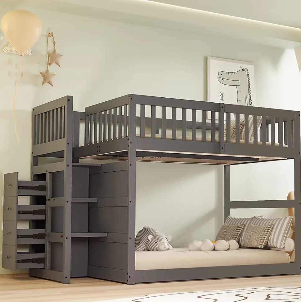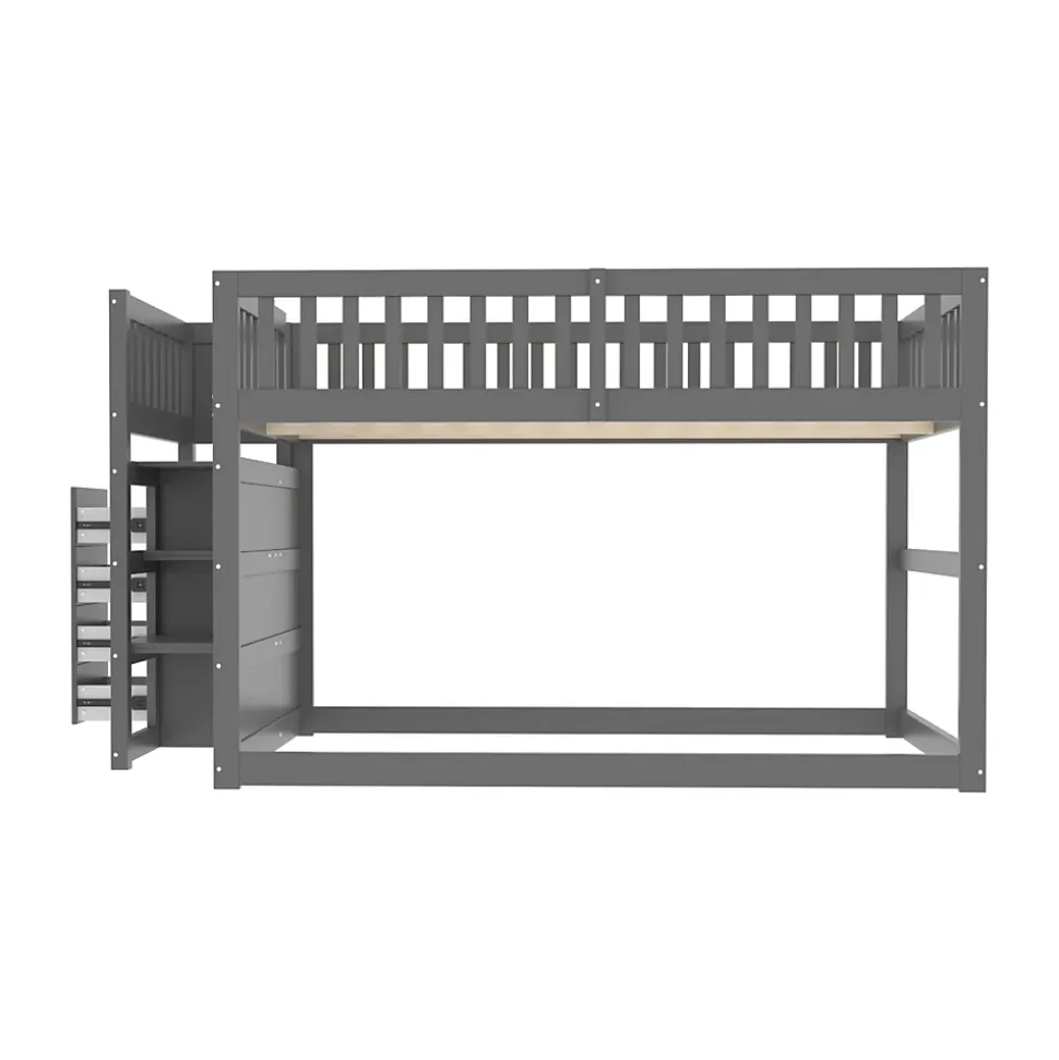 DescriptionLit superposé bas pour enfants 140 x 200 cm, alliant sécurité, confort et design élégant. Sa finition grise moderne s’intègre facilement à tous les décors de chambre. L’escalier sécurisé intègre quatre tiroirs de rangement, idéaux pour jouets, vêtements ou literie, tandis que la haute barrière autour du lit supérieur assure une protection maximale. Le lit inférieur peut servir de second couchage ou d’espace de jeu (sommier non inclus).CaractéristiquesLit bas sécurisé : Accès facile au lit supérieur, idéal pour les jeunes enfants.Escalier avec rangement : 4 tiroirs intégrés pour un espace organisé et pratique.Polyvalent : Le lit inférieur peut être utilisé comme lit ou aire de jeux.Finition élégante : Gris moderne et lumineux pour tous les styles d’intérieur.SpécificationsDimensions hors tout : 247 x 145 x 135,5 cmCapacité de charge : 120 kgÉpaisseur de matelas recommandée : 8-12 cmMatériau : Pin + contreplaqué + MDFNombre de lattes : 15Nombre de colis : 3Poids total : 76 kgMontage requis : Oui, outils inclus