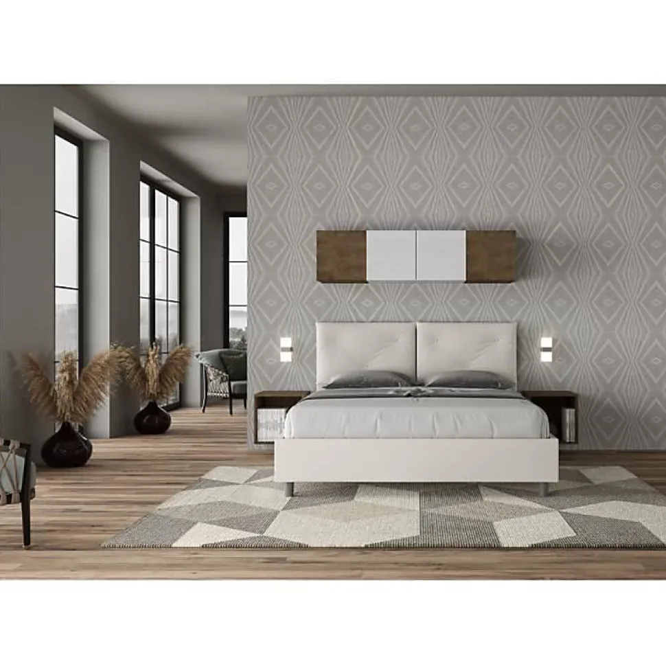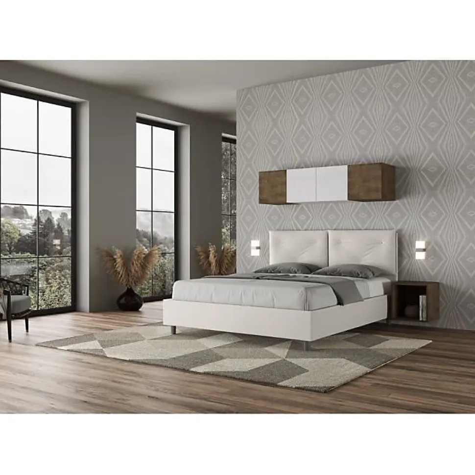 Lit double Appia 160×190 avec tête de lit et lit rembourrés, revêtement en simili cuir, particulièrement polyvalent et facilement combinable avec n’importe quel style d’ameublement.Le lit double Appia 160×190 se caractérise par un style élégant et raffiné grâce aux larges coussins de la tête de lit, il est entièrement recouvert de simili cuir.La présence du matériau en simili cuir, en plus de donner à la pièce une atmosphère accueillante et invitante, offre la commodité d’un nettoyage rapide et facile, grâce à l’utilisation d’un simple chiffon en microfibre.Lit fourni sans sommier, prévu pour sommier 160×190 h.4 cm et matelas 160×190 cm – Matelas non inclusCouvre-lit non amovible.Produit ItyhomeFabriqué en ItalieDimensions lit : L.175 P.202 H.110 cmHauteur des pieds : 12 cmHauteur du lit : 27 cmHauteur du lit depuis le sol : 39 cm