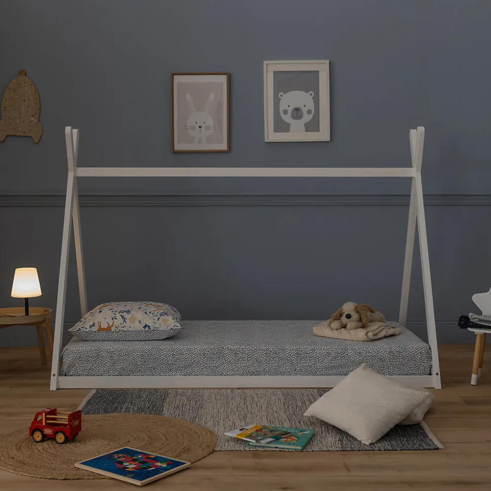 Ludique : Forme de tipi pour l’imagination., Confortable : Lattes en contreplaqué pour un bon soutien., Dimensions parfaites : Convient à un matelas 190x90cm.