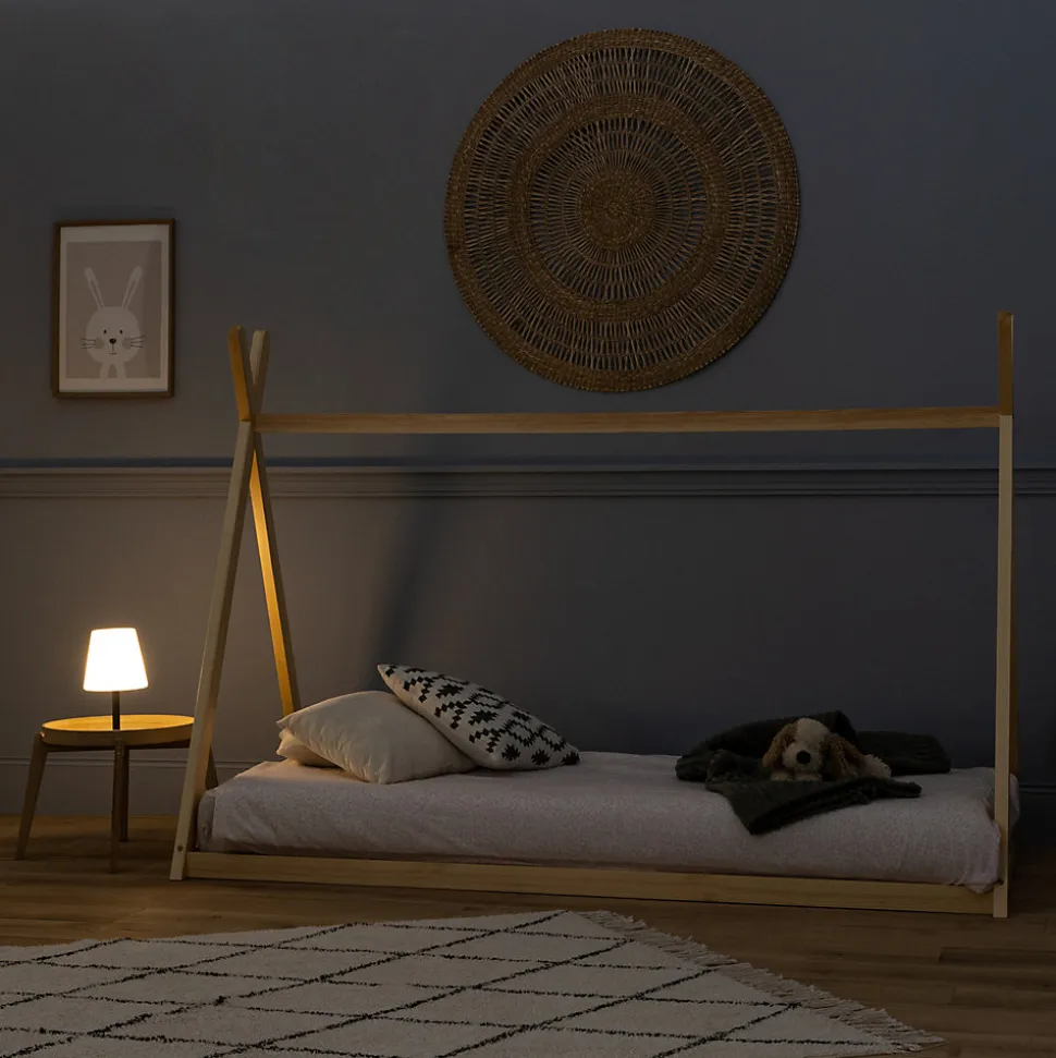 Ludique : Forme de tipi pour l’imagination., Confortable : Lattes en contreplaqué pour un bon soutien., Dimensions parfaites : Convient à un matelas 190x90cm.