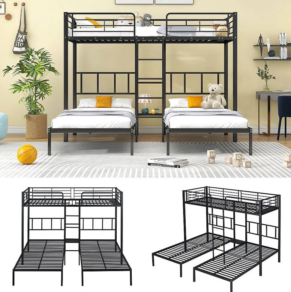 Lit superposé triple 90×200 cm (noir métal)Caractéristiques principalesDimensions : 227×205,5×170 cmMatériau : Métal robusteCapacité : 3 couchages indépendantsSécurité : Barrières hautes + échelle 4 marchesNorme : Certifié EN 747 (sécurité européenne)Poids : 60 kgLivraison en 3 colis102,9×37,6×14 cm (25 kg)123,2×38,1×15,2 cm (18,7 kg)185,9×38,1×10,2 cm (22 kg)Points fortsStructure métallique ultra-stablePlateau de rangement intégréÉchelle sécurisée à angle droitConvient pour familles nombreusesMontage facile avec noticeInformations complémentairesOrigine : VietnamCharge max par lit : 100 kgMatelas 90×200 cm non inclus (13 cm max)Hauteur libre sous lit : 28,5 cmSolution pratique pour chambres partagées