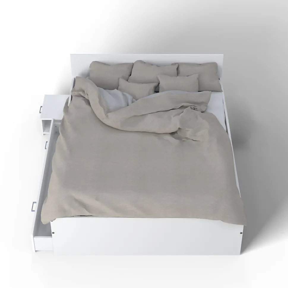 Lit TWIST 160×200 + chevet + tiroir / BlancLe lit Twist apporte à la chambre un côté confortable et pratique. Composé de 1 grand tiroir, il permet d’optimiser facilement le rangement dans l’espace nuit. Il dispose même d’une table de chevet montée sur roulettes que l’on peut glisser sous le lit en un clin d’œil pour libérer de l’espace dans la pièce ! Grâce à son design sobre et épuré, le lit Twist est un intemporel qui conviendra à tous les styles de décoration.Caractéristiques : – Structure en panneau de particules- Finition : blanc- Dimensions chevet : L40xP39xH21 cm – dimensions intérieures : L40XP33xH15 cm- Dimensions tiroir : L160xP39xH21 cm – dimensions intérieures : L156xP33xH16cmLivré démonté sans sommier et sans matelas, prévoir un sommier à cadre. A monter soi-mêmeDimensions:204x164x65 cm