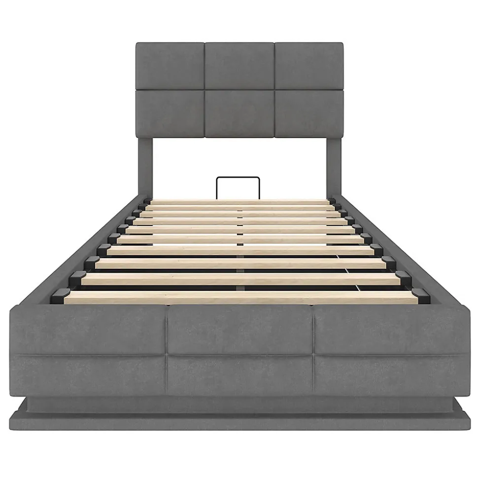 Caractéristiques du produitDimensions du colisSous-article 1 : 199 * 34 * 14,5 cm 25,5 kgSous-article 2 : 101 * 50 * 14 cm 19,5 kgSpécificationsDimensions totales 92 cm x 206 cm x (105-110-115 cm)Matériau du plateau VeloursCouleur GrisPoids max. de l’utilisateur 250 kgSommier à ressorts requis OuiAssemblage requis OuiMatelas compatible (matelas non inclus) 25-30 cmNombre de colis 2Poids net/brut 39/45 kgCouleur principale : Gris foncéMatériau principal : VeloursStyle du produit : ContemporainUtilisation : Chambre à coucherDimensions du lit : 90 cm * 200 cmType de lit : Cadre de litSommier requis : Sommier requisMatériau du rembourrage : VeloursMatériau du cadre de lit : Métal