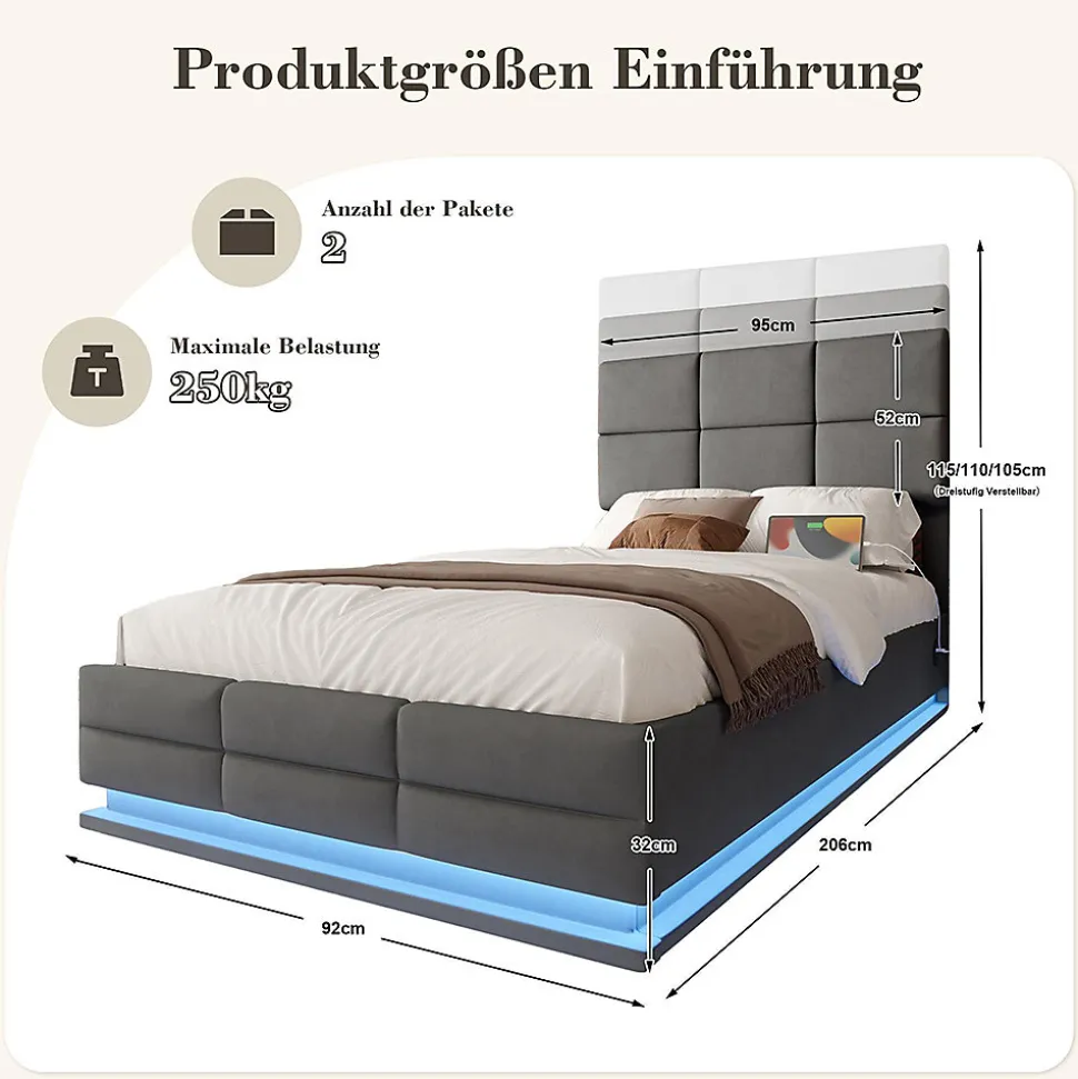 - Ports USB pratiques sur le côté du cadre de lit : rechargez facilement votre smartphone ou votre tablette sans avoir à quitter votre lit. Idéal pour les utilisateurs modernes.