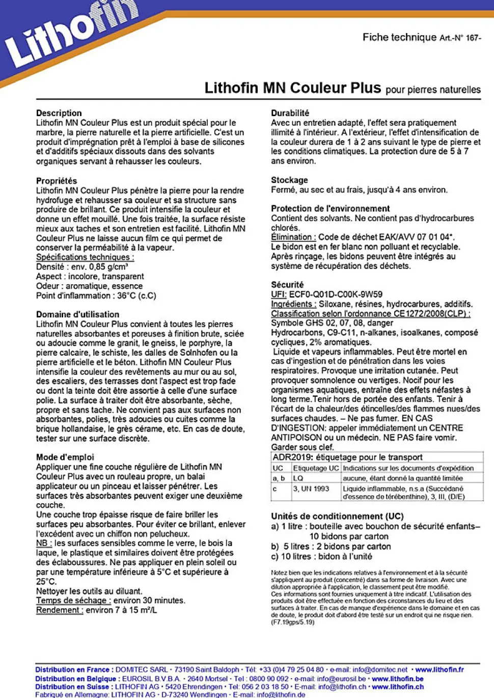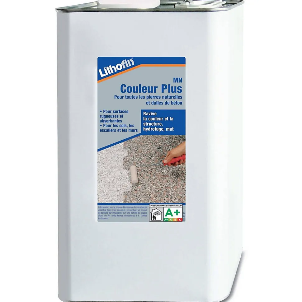 Amélioration de l’aspect des revêtements pierres naturelles et dalles béton. Intensifie couleurs, rend hydrofuge et repousse les salissures.