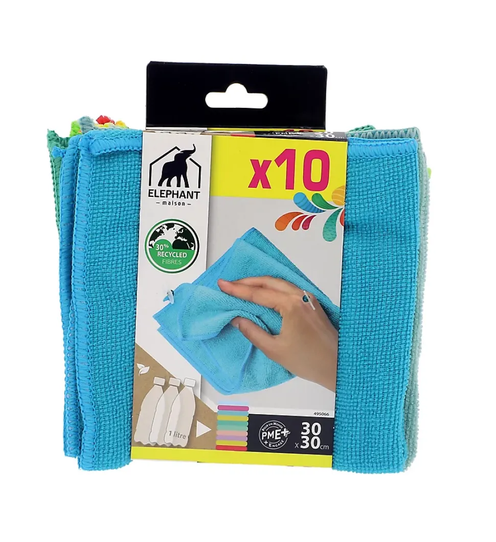 Lot 10 lavettes microfibre Elephant multicouleur