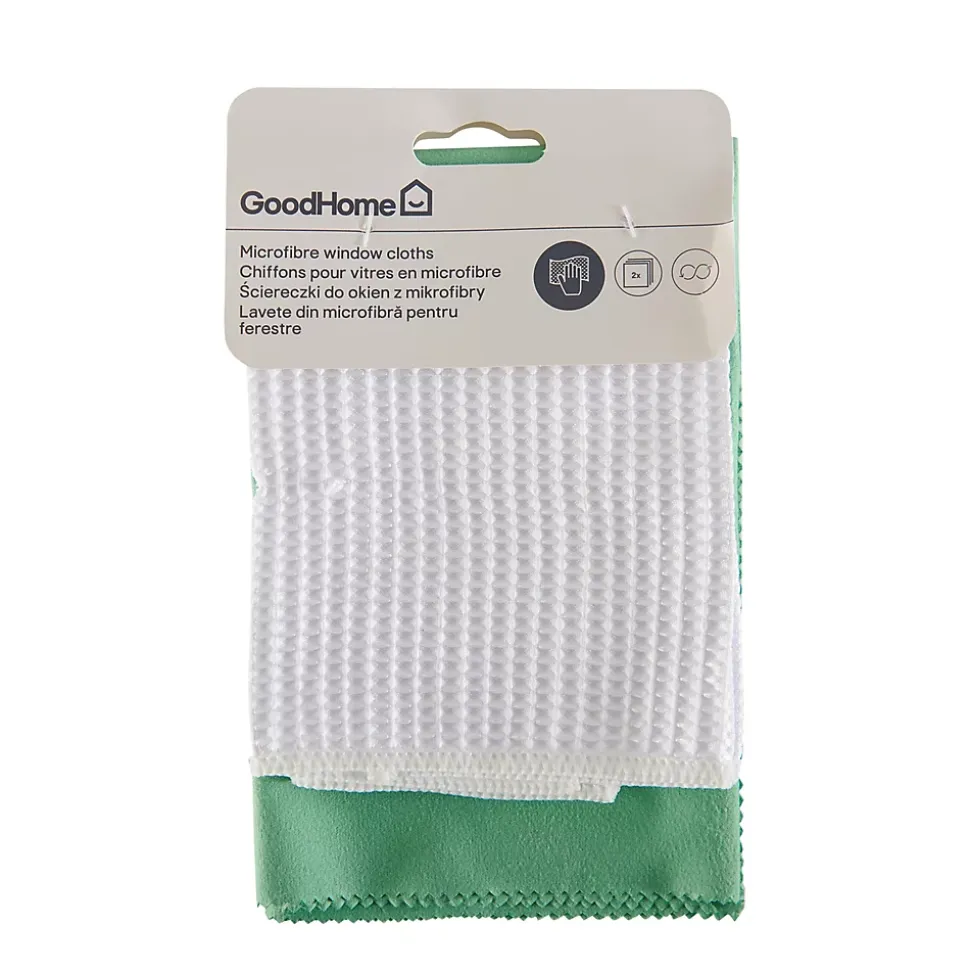 Lot 2 chiffons de nettoyage pour vitres microfibre GoodHome blanc L.32 x l.32cm