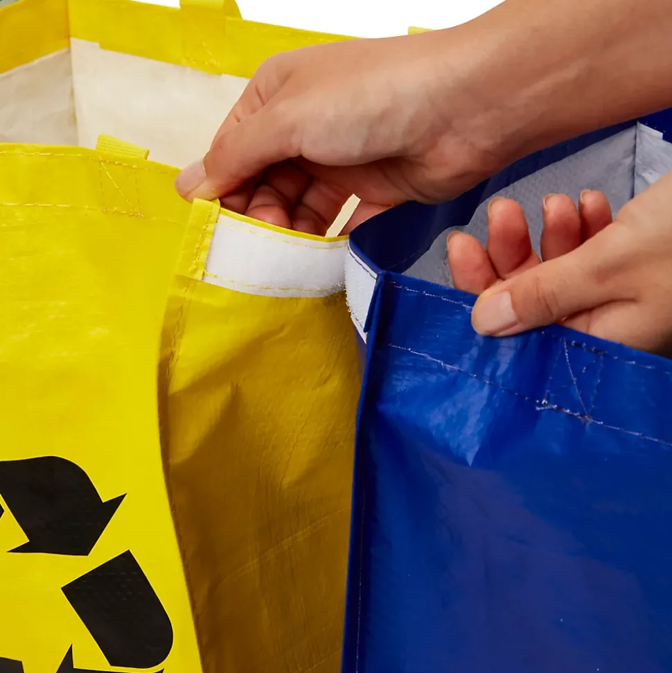 - Couleurs distinctes : Le lot comprend trois sacs de couleurs différentes (bleu, vert et jaune) pour faciliter le tri des déchets : bleu pour le papier, vert pour le verre et jaune pour le plastique et les métaux.