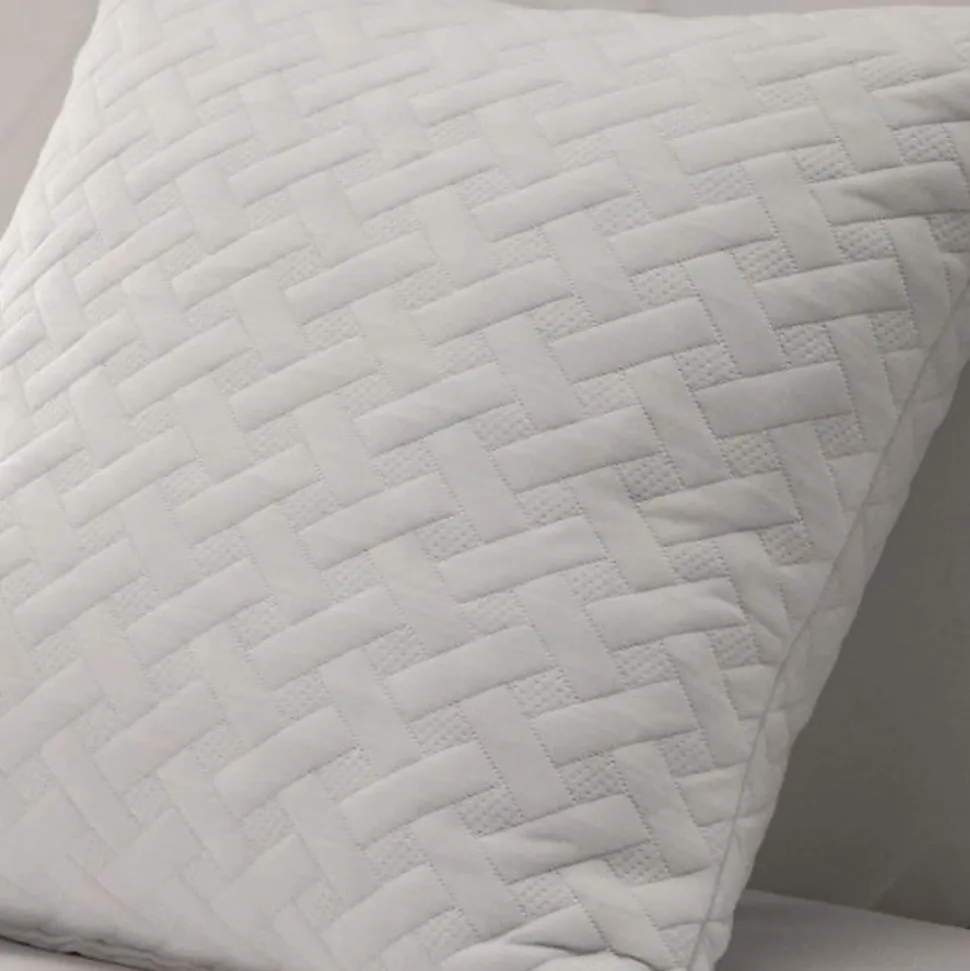 Pack de 2 oreillers carrés TODAY 60×60 cm, garnissage 100% polyester 1100 g par oreiller, confort medium style mémoire de forme. Housse matelassée douce et lisse avec légère texture ponctuée et bords passepoilés. Hypoallergénique, fabrication Bulgarie, lavable en machine à 30°C (ne pas essorer au sèche-linge ; nettoyage à sec et blanchiment déconseillés).