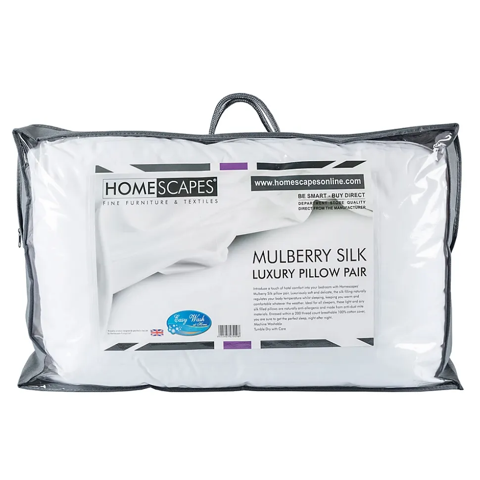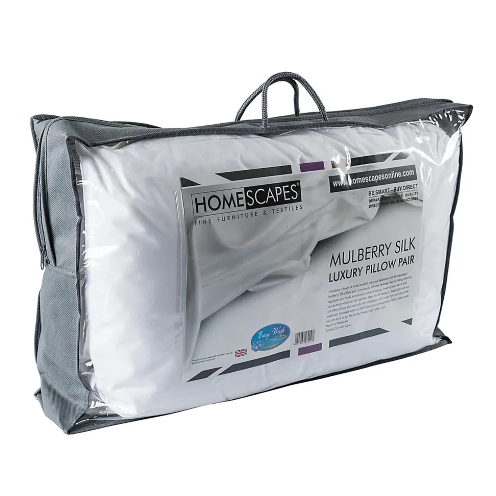 Pour des nuits d’une douceur extrême, laissez-vous séduire par ces 2 oreillers en soie rectangulaire aux propriétés thermorégulatrices et hypoallergéniques.Oreillers en soie naturelleMatière noble par excellence, la soie permet à ces oreillers d’être à la fois respirants, thermorégulateurs et donc aussi anti-transpirants. Très résistants grâce à la longue durée de vie de la soie, ces oreillers offrent un maintien tout en douceur. De plus la soie se répartit plus uniformément pour un confort et un moelleux supplémentaire.Oreillers rectangulaires hypoallergéniquesLa soie est aussi naturellement saine. Hypoallergénique, ces oreillers sont idéals pour les personnes souffrant d’allergies et d’asthme et fera le bonheur des peaux les plus sensibles. La soie est une fibre inhospitalière pour les acariens et est donc naturellement antibactérienne, sans traitement chimique.Le mélange utilisé pour ces oreillers a été conçu spécialement pour Homescapes, et est donc unique.