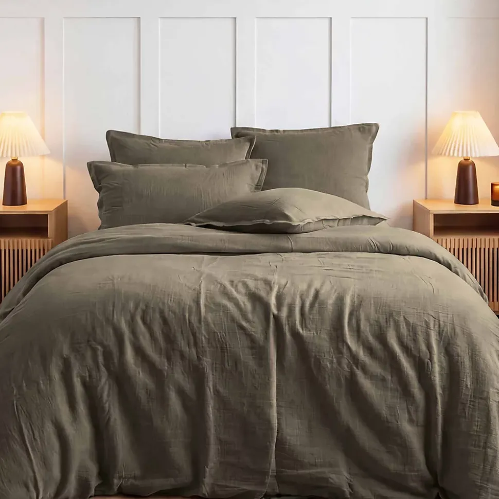 Le lot de 2 taies d’oreiller LOFT en gaze de coton est fait pour rendre vos nuits légères et remplies de fraîcheur. Ces 2 taies d’oreiller seront de véritables nuages de douceurs.Tissé en 160 gr/m², le gaze de coton est un tissus qui permet un très bon équilibre entre fraîcheur et confort, et dont l’aspect froissé conviendra aux intérieurs modernes ou plus classiques. Notre tissu est en double gaze de coton pour garantir plus de confort et de résistance.Notre linge de lit de la gamme LOFT est livré dans un pochon en tissus afin de réduire notre empreinte carbone par la réduction de l’utilisation d’emballages plastiques. Il vous sera utile comme sac de rangement ou sac à linge de voyage! Coordonnez votre linge de lit avec les draps housses et housses de couettes assortis en faisant la recherche Loft Sensei.Caractéristiques du linge de lit LOFT Sensei Maison :100% gaze de coton très fin de qualité supérieureDimensions : 50x70cm ou 65x65cmTissé en 160 gr/m²Uni avec un large choix de couleurLot de 2 taiesFacile d’entretien – Lavable en machine 40° – Séchage modéréDepuis des décennies, Sensei Maison vise à rendre vos intérieurs cocooning. Au travers de nos collections tendances, uniques et design notre ambition a toujours été de privilégier un rapport qualité/prix le plus juste.En savoir plus :Ce produit est certifié de la norme OEKO-TEX Standard 100 – Cette certification vise à garantir la non-toxicité des textiles et des colorants.