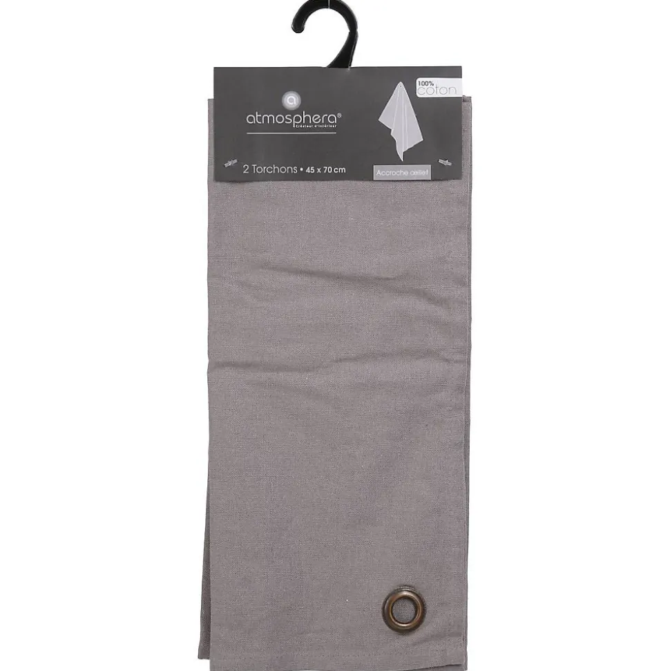 Brut et authentique, le lot de 2 torchons imprimés Atmosphera vous permettra d’accessoiriser votre cuisine dans un style intemporel.Un duo facile à vivreCe lot de 2 torchons imprimés est composé de 2 torchons unis qui obéissent à des dimensions standards de 45 x 70 cm. Réalisés en pur coton, ils sont lavables en machine et sont équipés d’oeillets métalliques qui permettent de les suspendre à tout type de crochet.Accrochez votre lot de 2 torchons imprimés sur une patère en bois et métal Atmosphera au look vintage et profitez d’une ambiance chaleureuse dans votre cuisine !Le petit plus décoChoisissez un tablier et un set composé d’un gant et d’une manique de la même collection afin de parfaire votre déco.