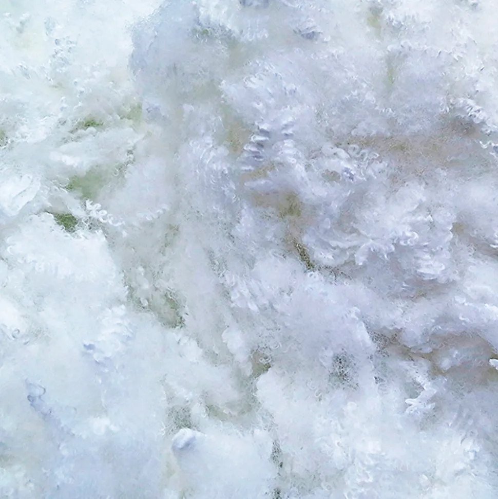 - GARNISSAGE : Ouate polyester à fibres creuses – ENVELOPPE : Tissu blanc 100 % coton.