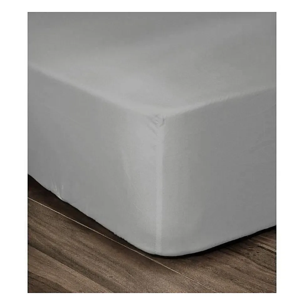 Drap housse LOVELY HOME 100% Coton 160x200cm avec bonnet 35cm, couleur gris clair, spécial matelas épais, 54 fils pour un toucher agréable. Idéal pour lit double.