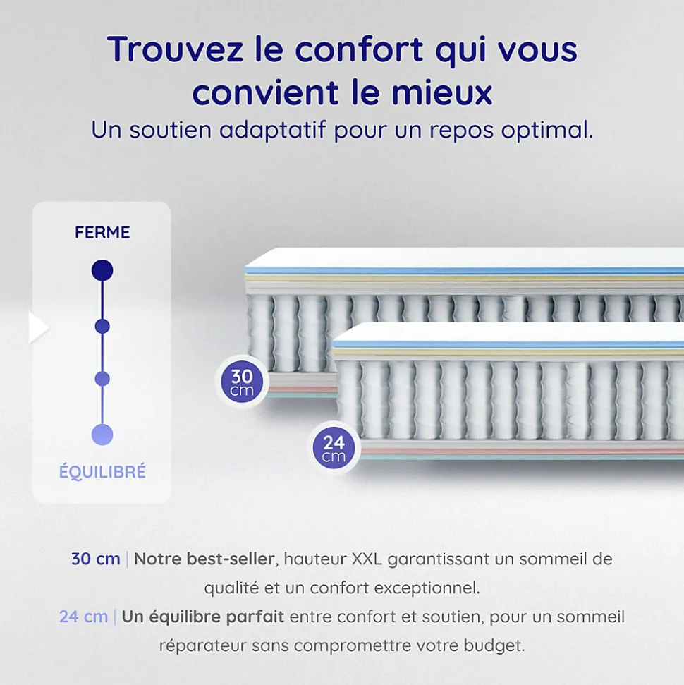 - Usage : Conçu pour les couples ou les dormeurs exigeants, offrant un excellent soutien et un confort durable.