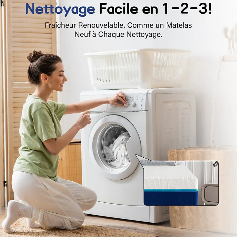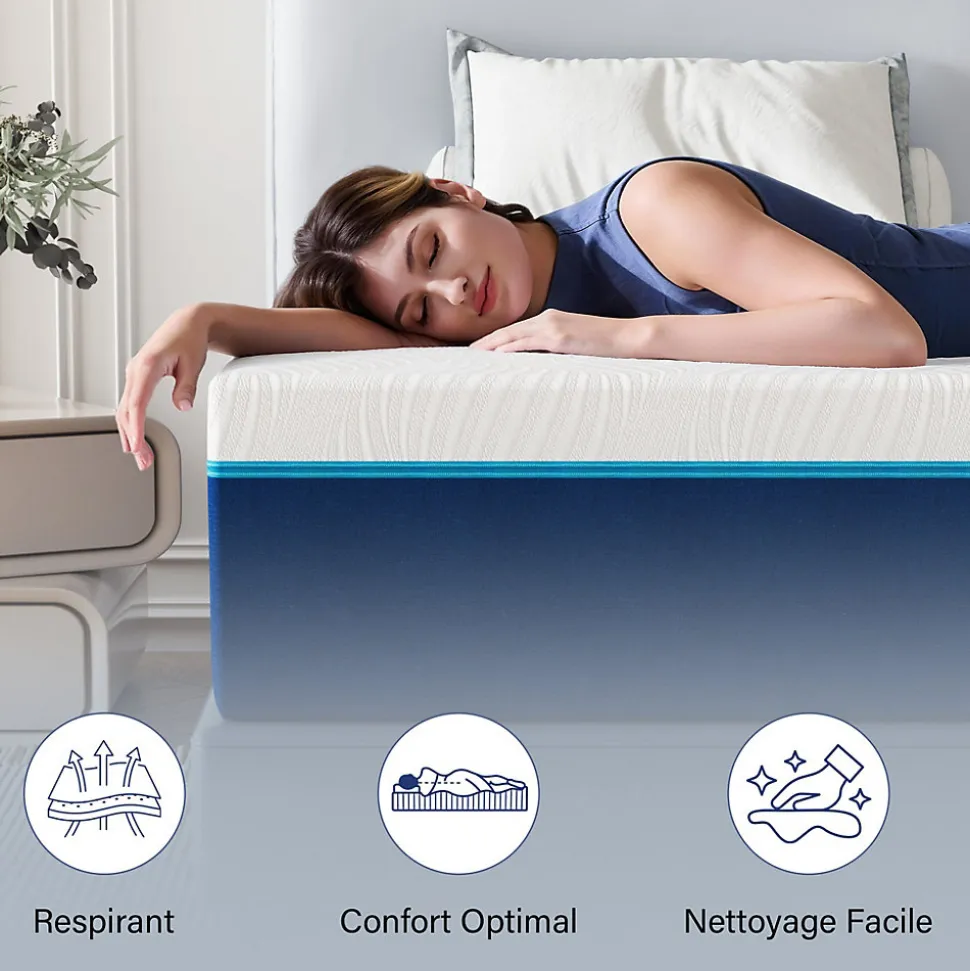 Description du produit:Dimensions du matelas déplié : 160 x 200 x 16 cmDimensions de l’emballage : 168 x 24 x 24 cmPoids du colis : 17,3 kgComposition de l’âme :1.Couche supérieure : 2 cm de mousse bleue souple 25D2.Couche de support : 14 cm de mousse dure au charbon de bambou 25DCaractéristiques :1.Housse amovible et lavable en machine2.Dureté moyenne à ferme3.Surface en tissu tricoté respirant4.Fond en tissu blanc antidérapant, côtés en tissu de canapé résistant5.Hypoallergénique et réversible Informations importantes :1.Les tailles et poids indiqués sont des valeurs nominales.2.Veuillez noter qu’il peut exister une tolérance de 1 à 2 cm sur les mesures manuelles et le processus de roulage sous vide, ce qui est tout à fait normal.3.Le matelas est livré roulé sous vide dans un carton compact. Après déballage, laissez-le se déployer et reprendre sa forme pendant 24 à 48 heures dans une pièce bien ventilée.