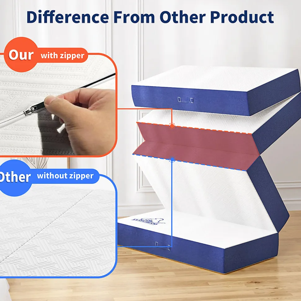 1. Matelas en mousse à mémoire de forme 4 plis : ce matelas pliable est composé d’une housse en tissu doux et respirant, d’une mousse à mémoire de forme en charbon de bambou et d’une couche inférieure en silicone antidérapante, offrant un soutien confortable tout en soulageant efficacement la pression sur votre corps et vous offrant une expérience de sommeil fraîche et nuageuse. Combinaison parfaite de confort, de durabilité et de commodité. 2. Doux et confortable : rempli de mousse à mémoire de forme de haute qualité, le matelas pliable épouse parfaitement les courbes de votre corps, permettant un confort supplémentaire pour une bonne nuit de sommeil. 3. Facile à nettoyer : housse lavable avec fermeture éclair lisse, le matelas peut être facilement retiré en quelques secondes pour le nettoyage. 4.Léger et portable : emportez ce matelas en déplacement. Il se plie facilement pour tenir dans un espace compact pour un rangement et un transport faciles. 5. Design pliable pour une utilisation multifonctionnelle : le design pliable permet de multiples utilisations. Il peut être utilisé comme lit d’appoint, tapis d’exercice, matelas futon ou comme aire de jeu pour les enfants. Il peut même être plié comme un canapé de fortune, un canapé ou un siège confortable.