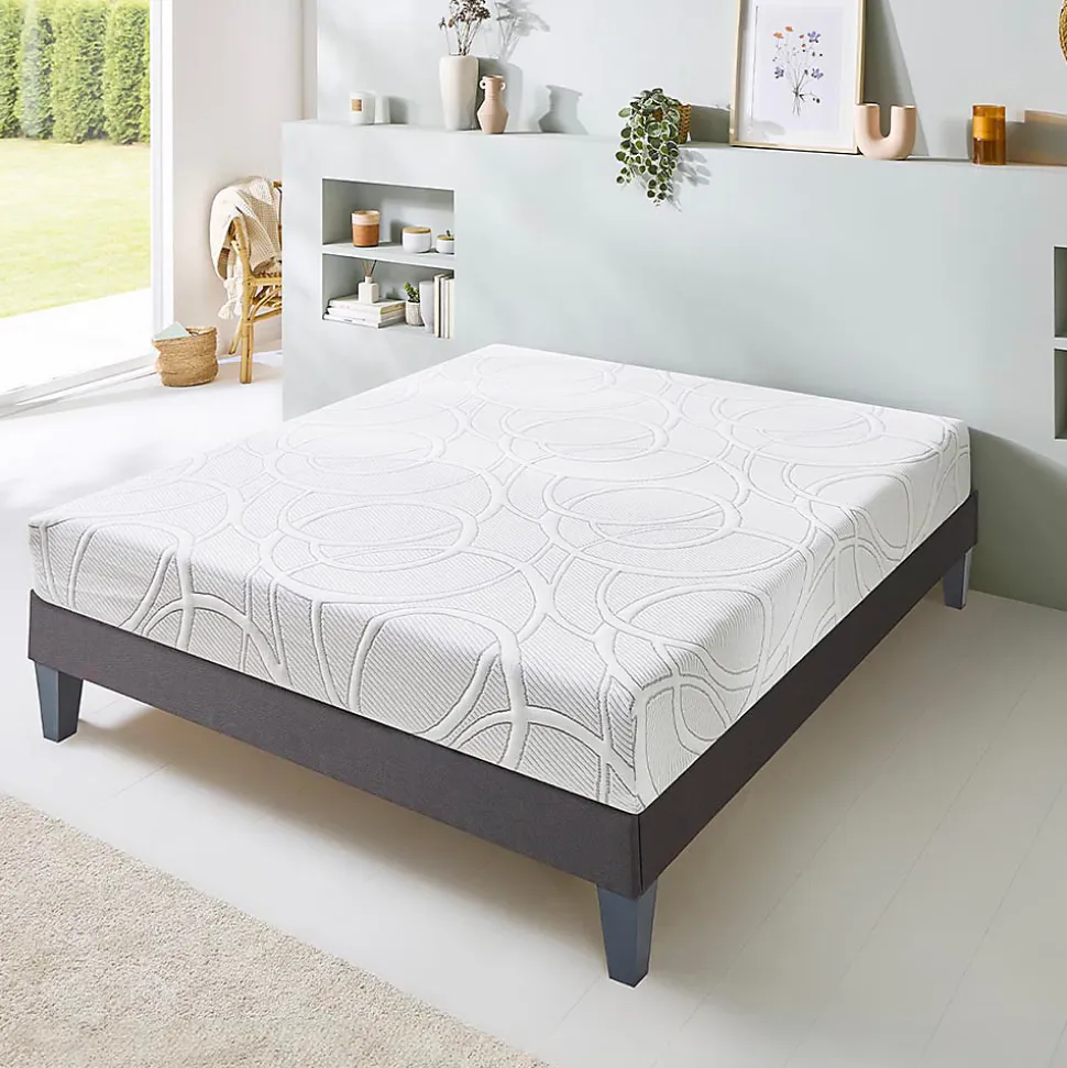CARACTERISTIQUES :Dimensions disponibles (cm) : 140×190 – 140×200 – 150×200 – 160×200 – 180x200Epaisseur du matelas : 21 cmTechnologie : Mémoire de forme avec microcapsules de gel thermorégulateurAccueil : EnveloppantSoutien : MediumIndépendance de couchage : ExcellenteAération : Très bonneFabrication : FrançaiseDéhoussable : OuiConditionnement : Compressé rouléGarantie : 10 ansCOMPOSITION :Âme intérieure du matelas (certifiée CertiPUR) : 15 cm de mousse Haute Densité de 33 kg/m³ + 5 cm de mousse viscoélastique à mémoire de forme de 60 kg/m³ avec microcapsules de gel thermorégulateurCoutil (labellisé Oeko-Tex) : Tissu stretch 100 % PES de 300 gr/m²POINTS FORTS :Ergonomie : La mousse viscoélastique à mémoire de forme s’adapte à la morphologie, permettant une meilleure circulation sanguine ainsi qu’une réduction des douleurs dorsales et articulaires.Zonage de confort : La quantité de mousse est répartie de manière à apporter à chaque partie du corps le soutien idéal.Réduction des réveils nocturnes : La mousse viscoélastique à mémoire de forme permet d’éviter toute transmission de mouvement, vous garantissant un sommeil plus paisible.Thermorégulation : Les microcapsules de gel thermorégulateur permettent de maintenir la surface de couchage à une température idéale, quelle que soit la saison.Hygiène : L’aération du matelas est optimisée pour vous offrir une literie qui restera saine au quotidien et dans le temps.