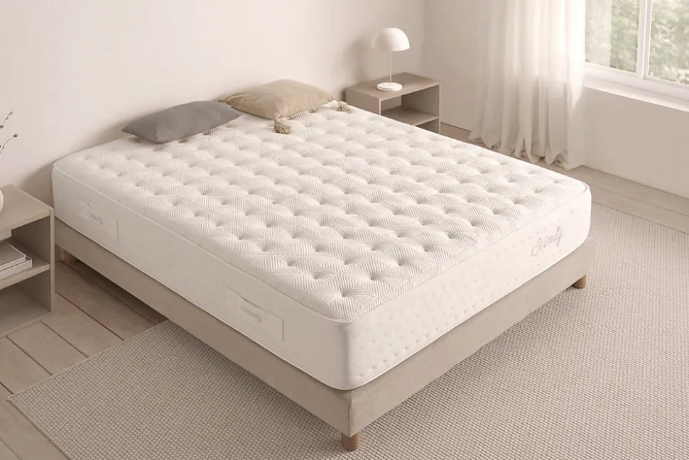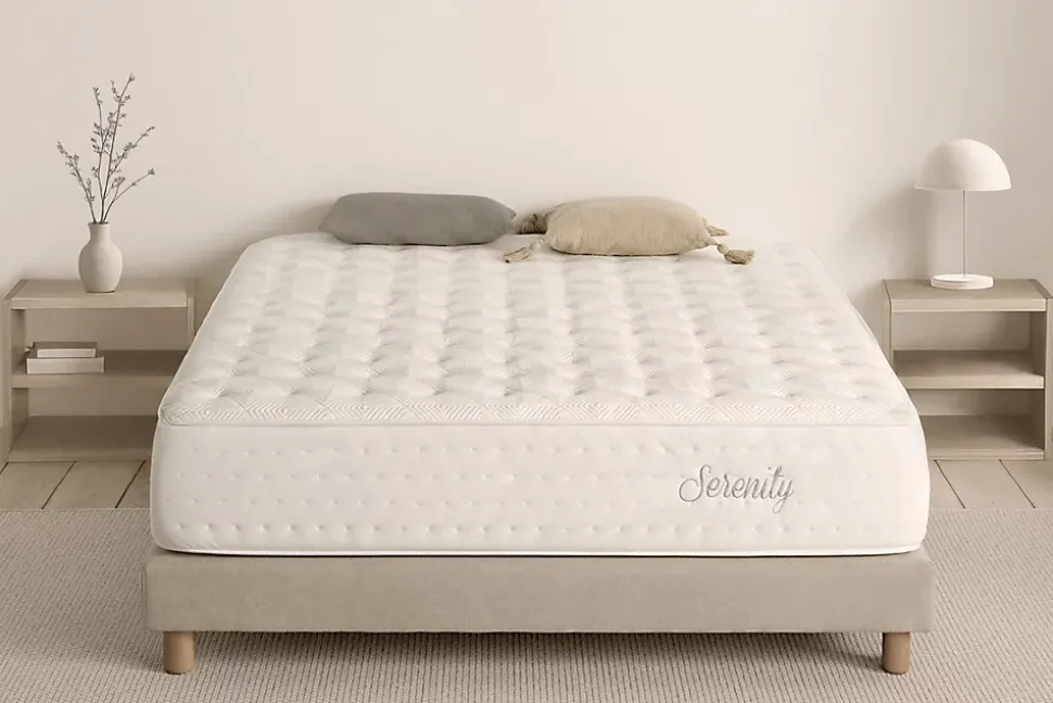1. Repos ferme, adaptable et innovant Le Matelas Serenity combine ressorts ensachés, mousse à mémoire de forme, Hypersoft et mousse haute densité pour offrir un sommeil réparateur et de haute qualité. Avec une épaisseur de 30 cm, il assure un équilibre parfait entre fermeté, confort et respirabilité, tout en soutenant l’alignement naturel de la colonne. La mousse Hypersoft, issue d’une technologie avancée, se distingue par sa résilience, sa ventilation optimale et son confort enveloppant mais ferme, garantissant fraîcheur, ergonomie et durabilité. 2. Ergonomie et raffinement italien La mousse à mémoire de forme procure un accueil progressif et ergonomique, soulageant les points de pression dès le premier contact. Son cœur à ressorts ensachés indépendants limite les transferts de mouvement et favorise un sommeil profond et continu. Le tissu de finition italien, confectionné selon les plus hauts standards, apporte une touche de raffinement et d’élégance, sublimant l’esthétique du Serenity et renforçant sa qualité premium. 3. Fiabilité et longue durée Conçu pour une durabilité de 10 ans, le Serenity bénéficie des certifications OEKO-TEX et européenne, avec 3 ans de garantie et une satisfaction 100 % garantie. Fabriqué en Espagne, il est traité Sanitized (anti-acariens, antibactérien, antiallergique) et équipé du système FlowSpring (thermorégulation et anti-humidité). Ses 4 poignées facilitent la manipulation. Livré roulé et sous vide, il doit reposer 24 h avant usage et être déballé sous 3 semaines pour préserver toutes ses qualités.