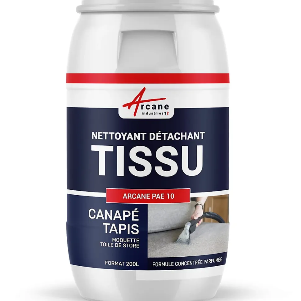 Nettoyant pour tapis, moquette, tissu, toiles et textiles, taud, parasol, store, permet de détacher, enlever tache sur textiles.La plateforme ne permet pas encore le regroupement des différents modèles. Pour voir toutes les contenances et toutes les couleurs, tapez ou copier-coller les termes suivants dans la barre de recherche : NETTOYANT TOILES ET TEXTILESDESTINATIONNettoyant, dégraissant, détachant, rénovateur original d’origine naturelle, NETTOYANT TOILES ET TEXTILES possède un très large champ d’intervention (textiles – moquettes). Son utilisation assure notamment l’élimination de la plupart :des huiles et graisses (d’origine animale, végétale ou minérale),goudrons, graphite, suiedes taches végétales ou organiquesdes salissures liées à la pollution urbainedes colles, adhésifs, encresMATÉRIAUX ÉLIGIBLESTous types de textiles.Stores, toiles, bâches . . .Tapis, moquettes, paillassons . . .Textiles , linges de maison, vêtementsApplication : En tant que fabricant Français, nous mettons à disposition un document PDF disponible en bas de page vous indiquant les informations produits ainsi que les consignes d’application.CONSOMMATIONPour le traitement des taches : selon votre besoinTraitement général : Diluer dans de l’eau à raison d’un verre par litre (environ 5 bouchons doseurs).