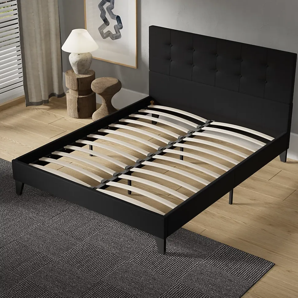 - Description des matériaux : -Le cadre du lit est revêtu d’un tissu de coloris noir, gris, lin ou brun. – Les pieds du lit sont de coloris noir.