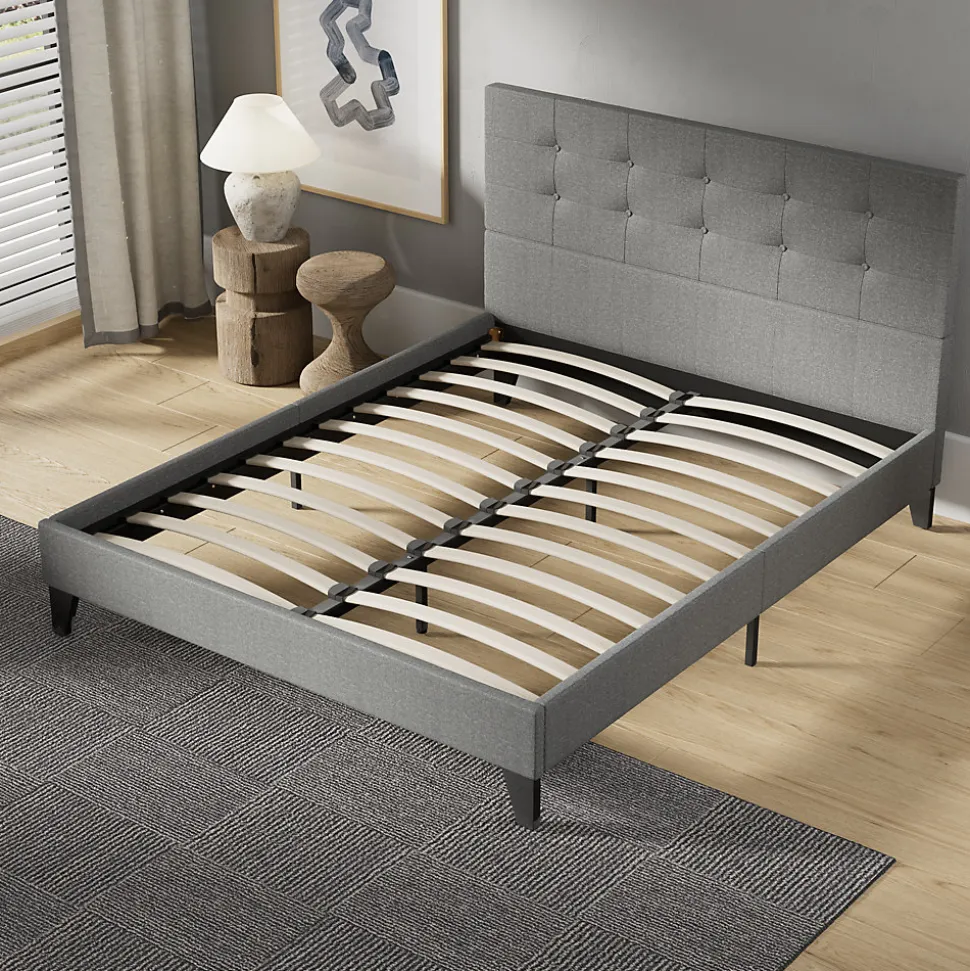 November Sleep Lit 140×190 cm avec tête de lit tissu gris