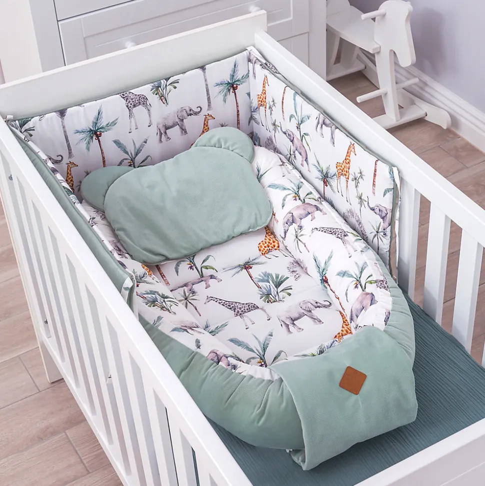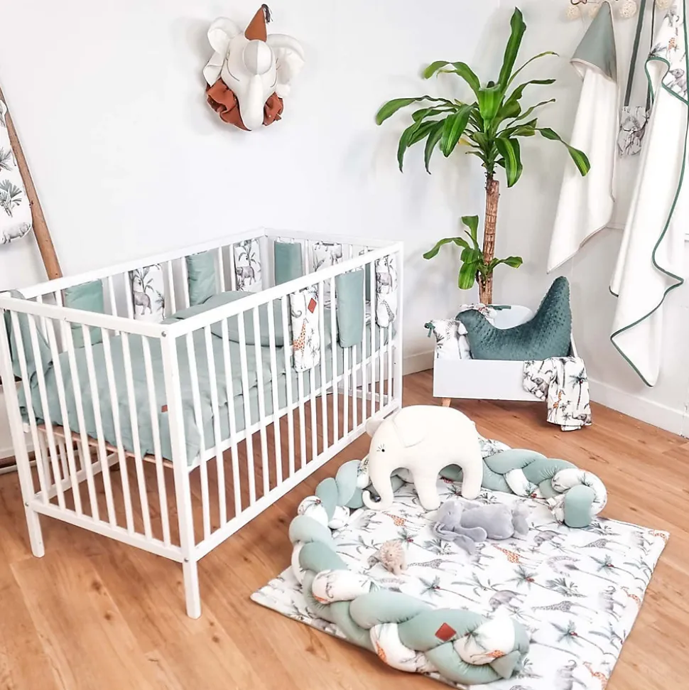 Coussin plat réversible Safari – douceur, confort et style tropicalOffrez à votre bébé un sommeil tout en tendresse avec notre coussin plat réversible Safari, confectionné en coton et velours velvet, aux motifs tropicaux inspirés de la savane. Ce coussin original aux adorables petites oreilles d’ourson apportera une touche ludique et apaisante au quotidien de votre enfant.Pensé pour respecter la morphologie des tout-petits, il assure un soutien léger de la tête dès la naissance. Son design coloré et raffiné, souligné par un liseré vert d’eau, fait de ce coussin un véritable cocon de douceur à utiliser à la maison comme en déplacement.Caractéristiques principalesImaginé et fabriqué en France : chaque coussin est conçu avec soin dans nos ateliers, dans le respect du savoir-faire local.Tissus premium : en coton doux et velours velvet pour le confort de bébé.Réversible : deux faces pour varier les plaisirs et s’adapter à toutes les ambiances.Design ludique : oreilles d’ourson intégrées pour une touche de mignonnerie.Multi-usages : à utiliser dans le lit, le berceau, la poussette ou sur la table à langer (sous surveillance d’un adulte).Entretien facile : lavable en machine à 30°C.Collection Safari et accessoires complémentairesComplétez votre achat avec les autres produits de la Collection Safari : gigoteuses, couvertures, langes et accessoires assortis vous permettront de créer un univers harmonieux pour votre enfant.À propos de Sevira KidsSevira Kids est une marque française engagée pour le bien-être des familles