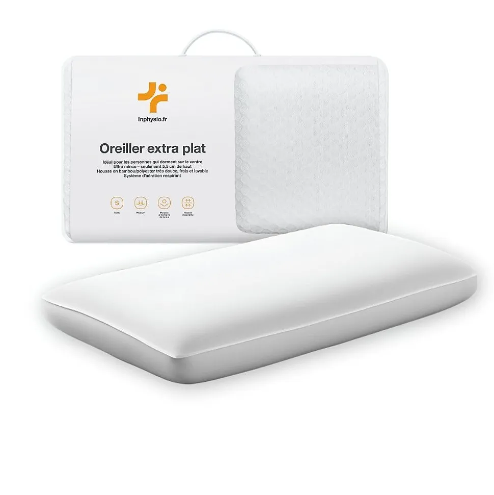 L’Oreiller Extra Plat « S » est conçu pour les dormeurs sur le ventre et ceux recherchant un soutien minimal pour un alignement naturel de la colonne vertébrale. Avec une hauteur ultra-mince de 5,5 cm et une mousse à mémoire de forme (45 kg/m³), il favorise un sommeil réparateur.Sa housse en tissu de bambou est respirante, antibactérienne et hypoallergénique, assurant une sensation de fraîcheur tout au long de la nuit. Associé à une taie en satin supplémentaire, cet oreiller réduit la friction sur la peau et les cheveux pour un confort optimal.