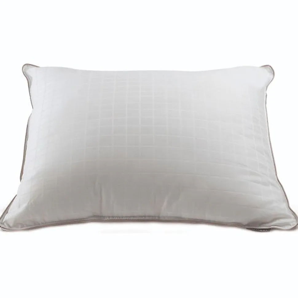 Oreiller garnissage Microduv (fibre polyester brevetée effet duvet), confort mi-ferme accueil très moelleux, enveloppe 100% coton satiné à carreaux, fabriqué en France, certifié OEKO-TEX Standard 100, lavable en machine jusqu’à 40°C.
