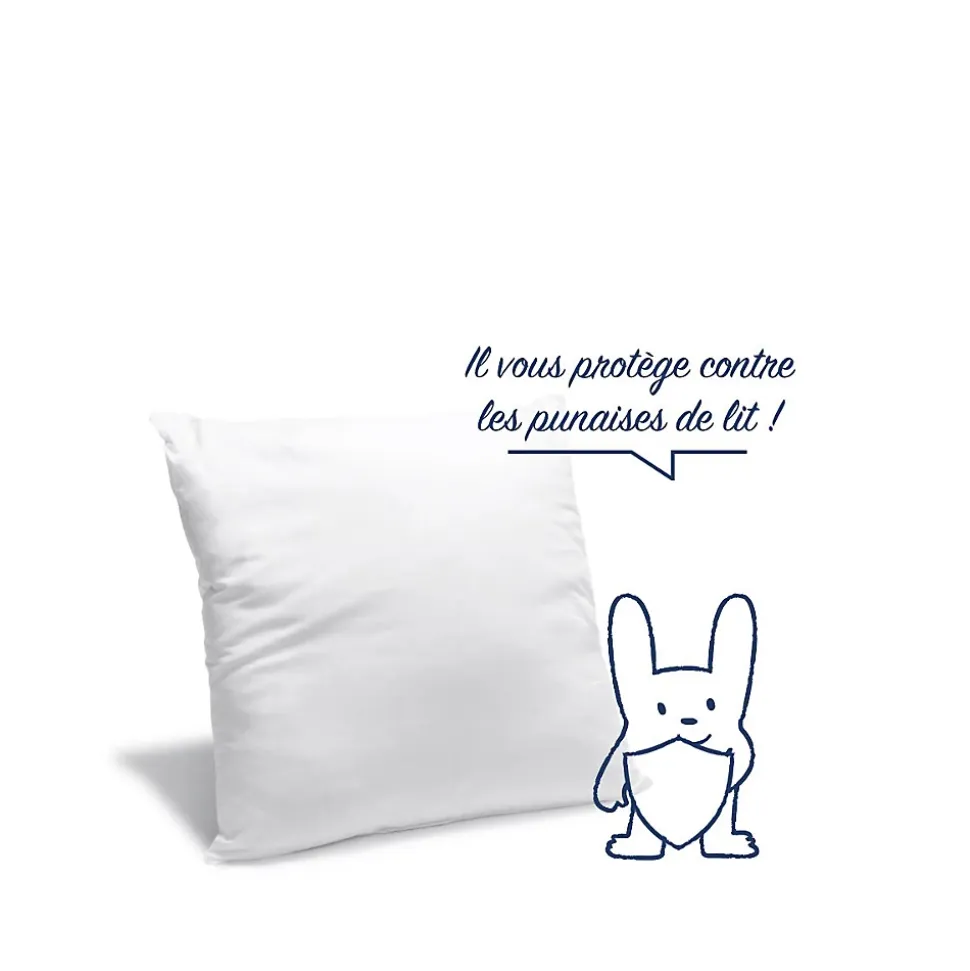 L’Oreiller Anti-punaises de litUn traitement à base d’huiles essentiellesUn environnement sain est indispensable à votre bien-être… en particulier la nuit ! L’oreiller anti-punaises de lit dispose d’une enveloppe microfibre Greencare Ultra : un mélange d’huiles essentielles qui protège votre environnement direct. Dormez tranquille, cet oreiller vous protège, en éliminant acariens et punaises qui entreraient en contact avec le tissu. Nul besoin de traitement complémentaire ou de brume d’oreiller ! Et pour vous assurer un maintien tout en douceur, il vous offre un confort moelleux.La qualité de la fabrication française Finitions soignées et composants bien choisis : cet oreiller futé est incroyablement facile à vivre, puisqu’il est lavable en machine (40°) et qu’il sèche rapidement à l’air libre. Doté d’un garnissage généreux (550g), cet oreiller 60×60 cm est conçu pour résister au temps et aux lavages, en conservant toutes ses qualités. Un sommeil sain et un maintien sans faille : vous ne pourrez plus vous en passer ! Ce produit bénéficie d’un traitement biocide. Principe actif géraniol.Produit comportant au moins 90% de matières recycléesProduit totalement recyclable