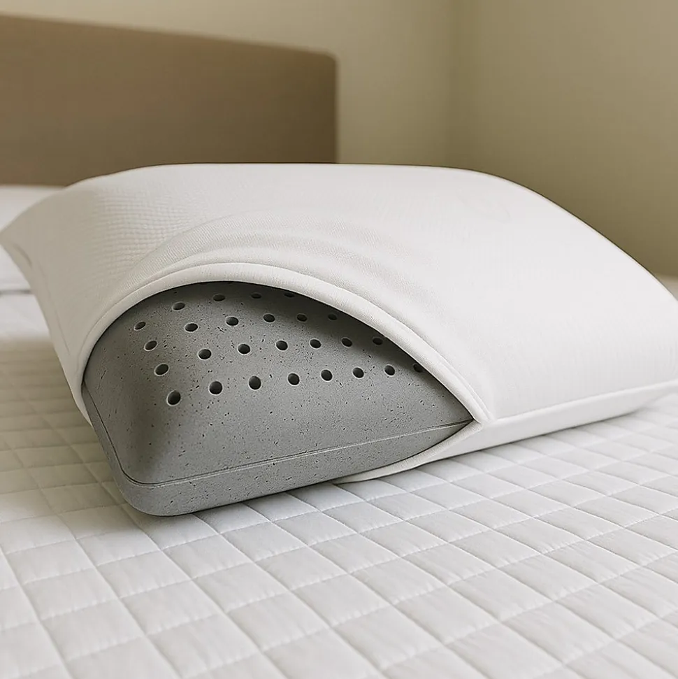 L’oreiller perforé en mousse viscoélastique enrichi en carbone offre un soutien ferme qui s’adapte à la morphologie de la nuque. Sa mousse thermosensible à mémoire de forme et les perforations du noyau optimisent l’ajustement et la circulation de l’air. Le tissu en maille haute densité garantit une bonne respirabilité et un confort durable.