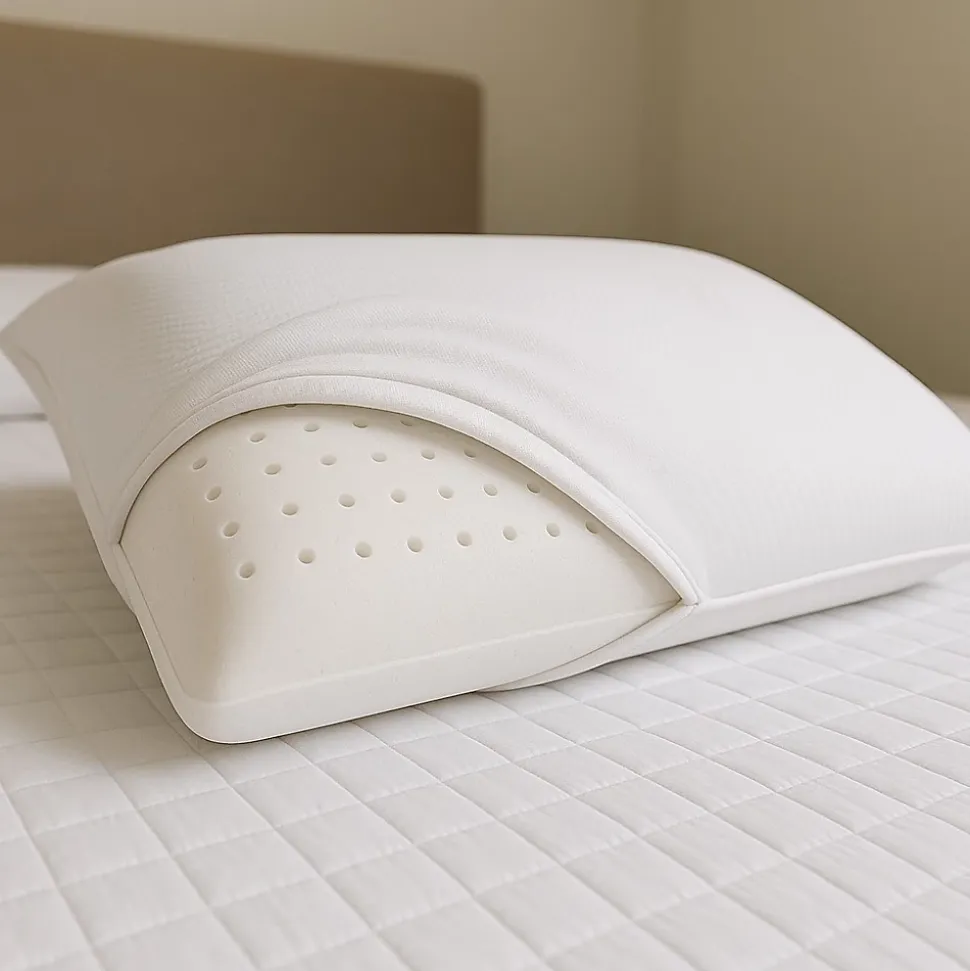 - Oreiller perforé en mousse viscoélastique qui épouse la morphologie de la nuque pour un maintien confortable.