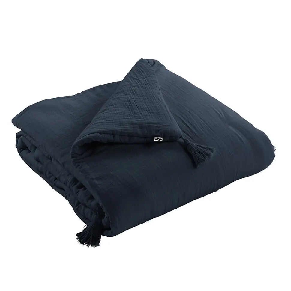 Couvre-pied 150x150cm Capitonné Gaze de Coton Minuit Ourea.Un indémodable pour prévenir le froid et habiller élégamment votre lit… mais aussi vos banquettes et canapés ! Une conception en double gaze de coton, légère, fluide et confortable. Une matière qui gagne en souplesse et en douceur au fil des lavages. ment froissée : pas besoin de repasser !Fabrication 100% Coton, densité 125g/m2. Garnissage 100% Polyester, densité 300 g/m2. Capitonnage léger. Finition avec pompon aux 4 coins. Produit certifié OEKO-TEX.Dimensions : 150x150cm.Entretien facile : Lavage à 30°C avec couleurs similaires. Pas de sèche-linge.Salon, Art de la table, Chambre : la gamme de linge de maison Ourea a des solutions pour tout !