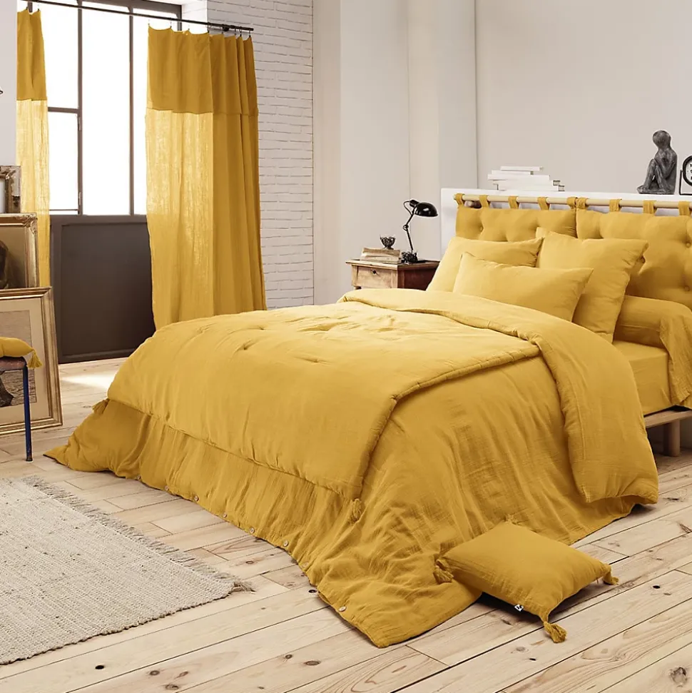- Couvre-pied 150x150cm Capitonné Gaze de Coton Safran Ourea. Un indémodable pour prévenir le froid et habiller élégamment votre lit… mais aussi vos banquettes et canapés !